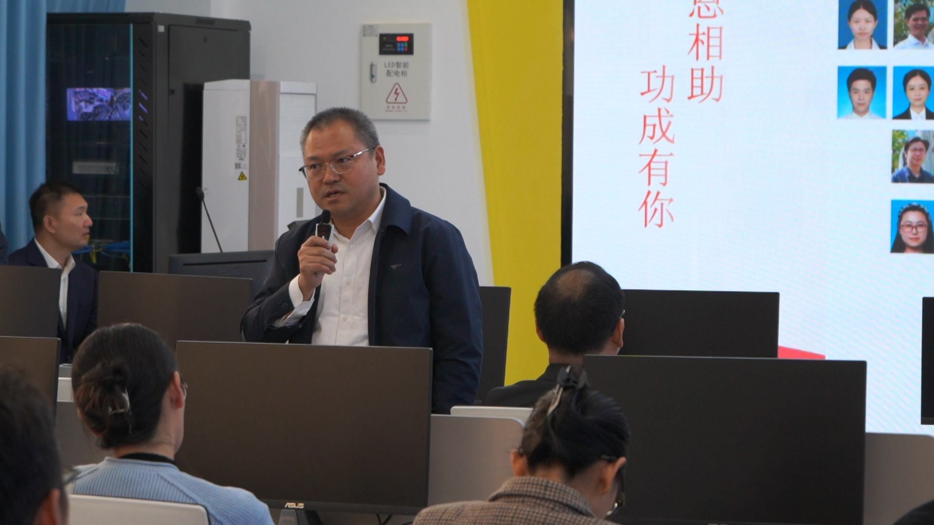 参观结束后,全体人员齐聚智能制造虚拟仿真实训中心,听取机电工程学院院长熊巍的成果汇报。熊院长从党建、校企合作、师资队伍、实训平台、育人体系五个维度展开,重点介绍学院多元校企育人模式的四大特色:与奥的斯合作推行现代学徒制实景培养,携手小鹏汽车开展订单班定向培养,联合华星光电创新“三段贯通 五级跃迁”现场工程师培养模式,联动汇川技术打造“汇英班”专项集训模式。在这些模式的赋能下,学生深度融入企业培训内容、考核标准与职业素养要求,实现从“懒散青年”到“奋斗青年”的蜕变,就业竞争力与职业发展潜力显著提升。