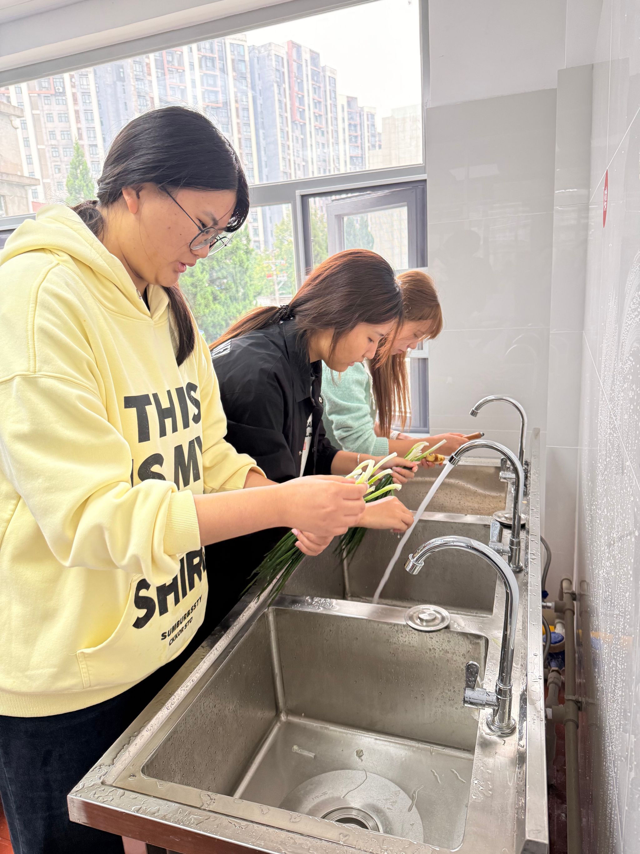 随后,同学们按照前期分组,领取各自小组的食材,在食堂师傅的演示下、在学校老师的指导下分工协作,从摘菜、清洗,到切丝切片,再到炒制、调料、装盘……在同学们的合作下,小炒莴苣、宫保鸡丁、酸辣土豆丝等数十道家常菜陆续上桌。每一道菜品都凝聚着同学们的匠心与汗水,不仅色香味形俱佳,更蕴含着对传统饮食文化的理解与传承。