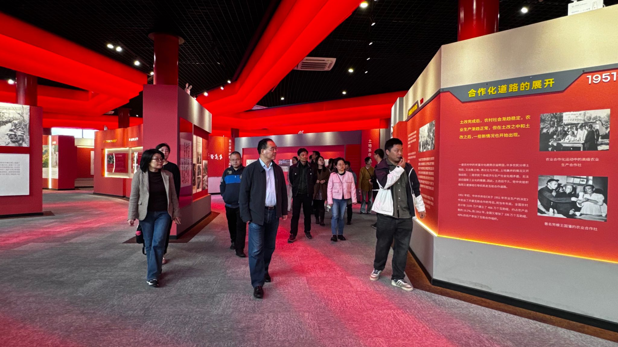 校领导与老师们一起参观集党史学习教育、自然科普于一体的红色党建馆。在解说员的带领下,大家通过详实的图文介绍、智能大屏互动以及党史展板等形式,深入了解了中国共产党在解决“三农”问题上的百年探索历程,共同重温了“红色记忆”,深刻体会中国共产党同人民群众的血肉联系。