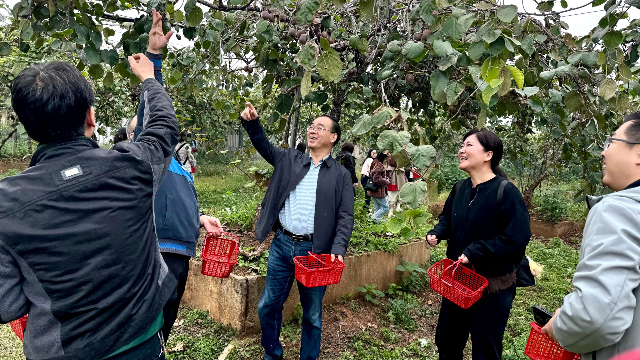 来到猕猴桃采摘园,大家纷纷化身采摘能手,现场呈现一派热火朝天的劳动景象。向家文书记挽起袖子,一边利落地摘下果实,一边笑着和大家分享他年轻时在农村的采摘秘籍;刘合强书记为新入职的年轻教师示范如何挑选最甜的果子,并关心他们的工作和生活。大家的果篮是满的,喜悦也是满的。这喜悦不在于收获本身,而在于和谁一起收获,又将会与谁一同,分享果实的甘甜。