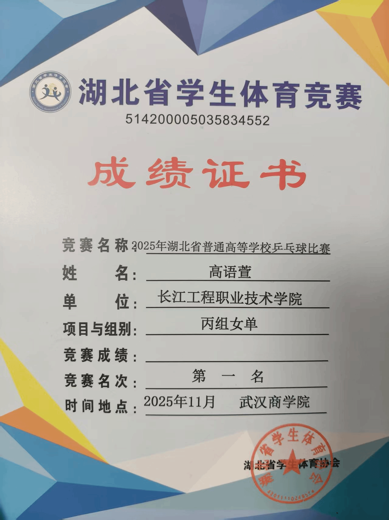 2025年湖北省高校乒乓球比赛于11月4日圆满收官。本届赛事汇聚了全省30余所高职院校的近300名运动员同场竞技。经过激烈角逐,我校代表队凭借稳定的发挥和出色的竞技状态,成功将女子团体和女子单打两项冠军收入囊中。