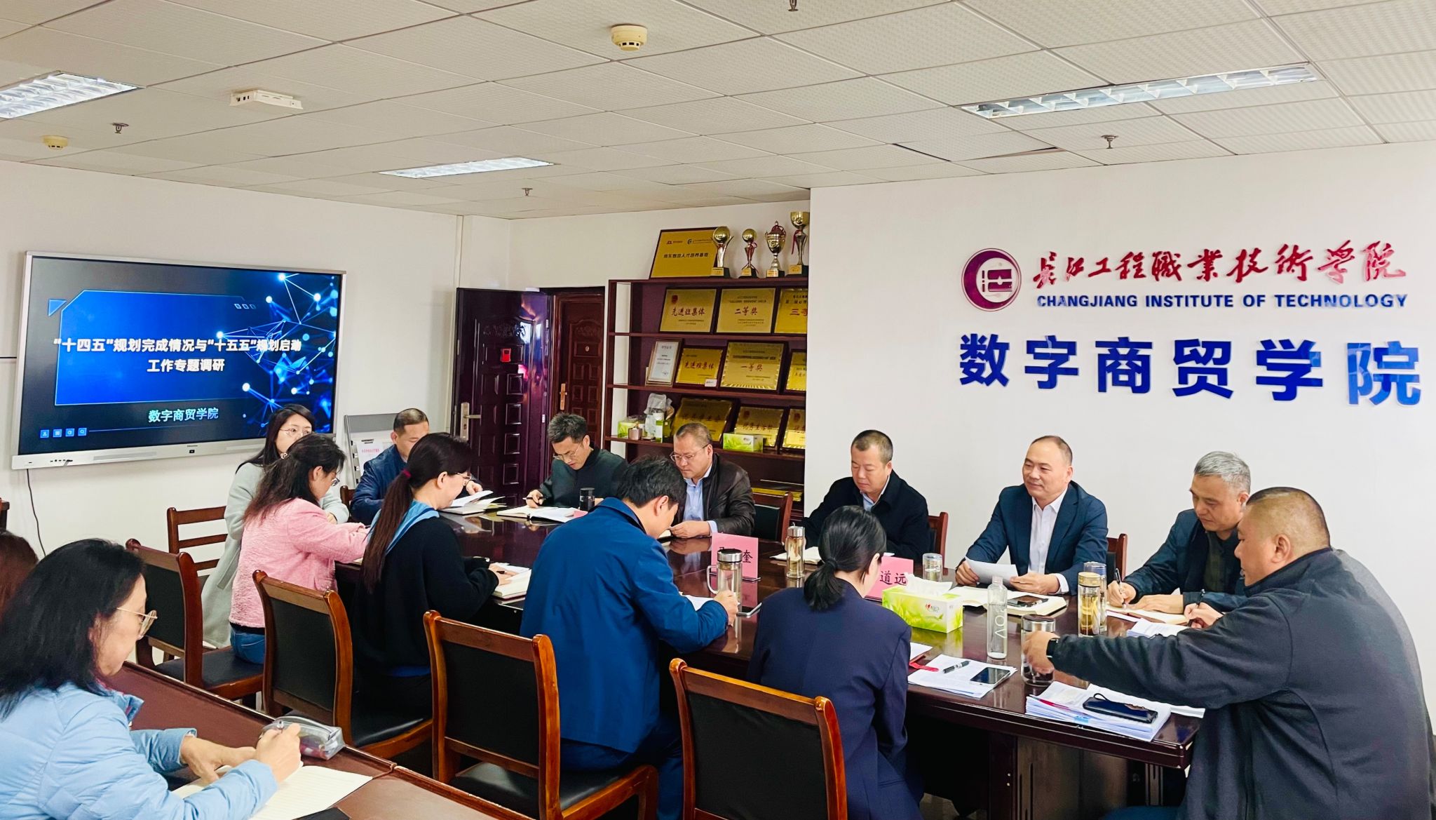 11月6日上午,为深入总结学校“十四五”成就、科学谋划“十五五”发展,学校党委书记马大奎,党委副书记、校长杨道远,湖北省纪委监委驻校纪检监察组组长、党委委员、纪委书记刘合强带队,赴数字商贸学院开展“十四五”规划完成情况与“十五五”规划启动工作专题调研。
