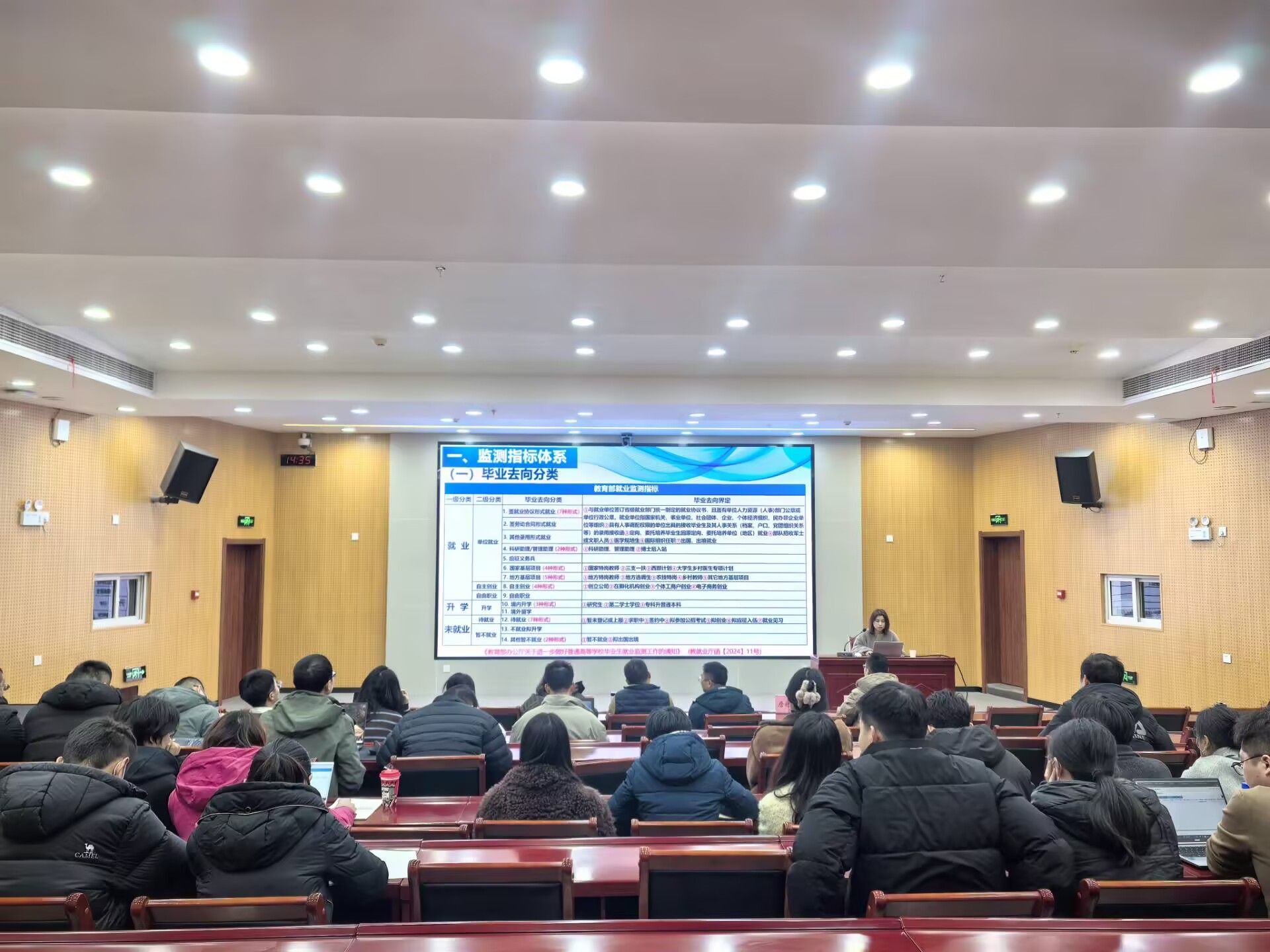 省就业指导中心学生事务部副部长詹迎春,从就业监测的政策、去向分类及审核依据和毕业去向确认操作流程三个方面进行了深入剖析,详细阐释了教育部关于就业统计的“四不准”“三不得”规定,强调各高校必须严守就业数据真实准确的底线。