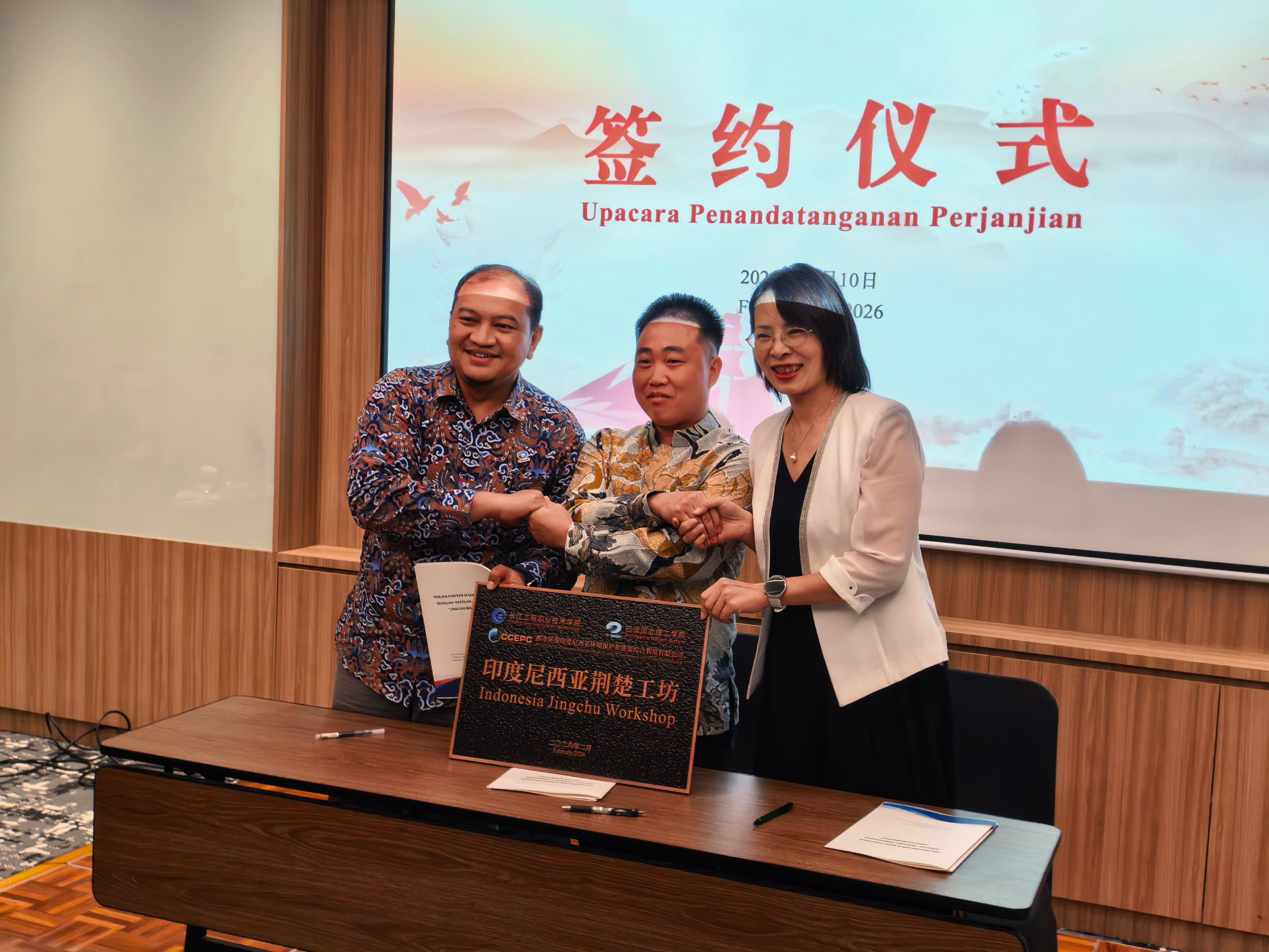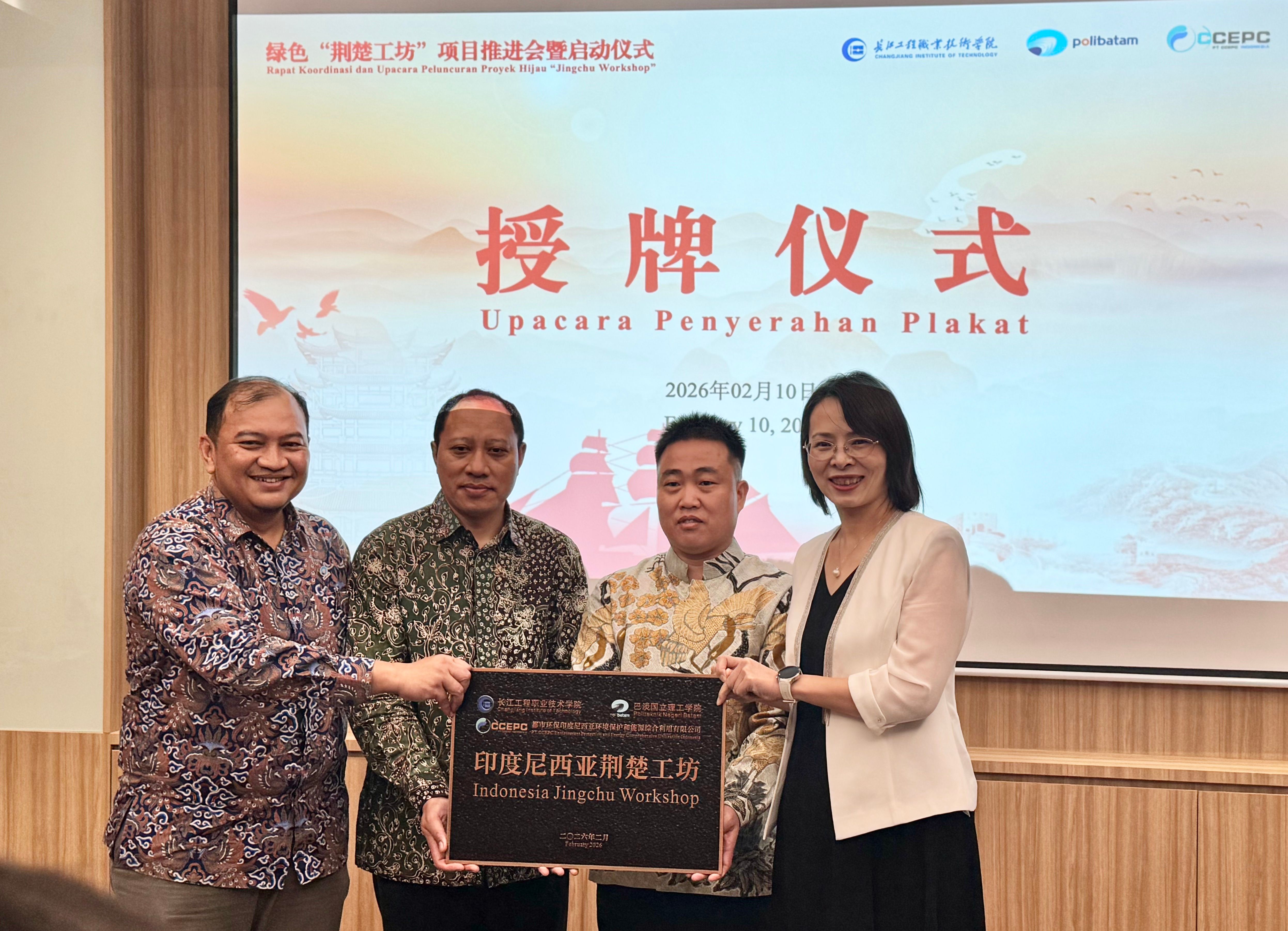 2026年2月10日,长江工程职业技术学院联合印度尼西亚巴淡国立理工学院、都市环保印度尼西亚环境保护和能源综合利用有限公司,在印尼雅加达隆重举行绿色“荆楚工坊”项目推进会暨启动仪式。