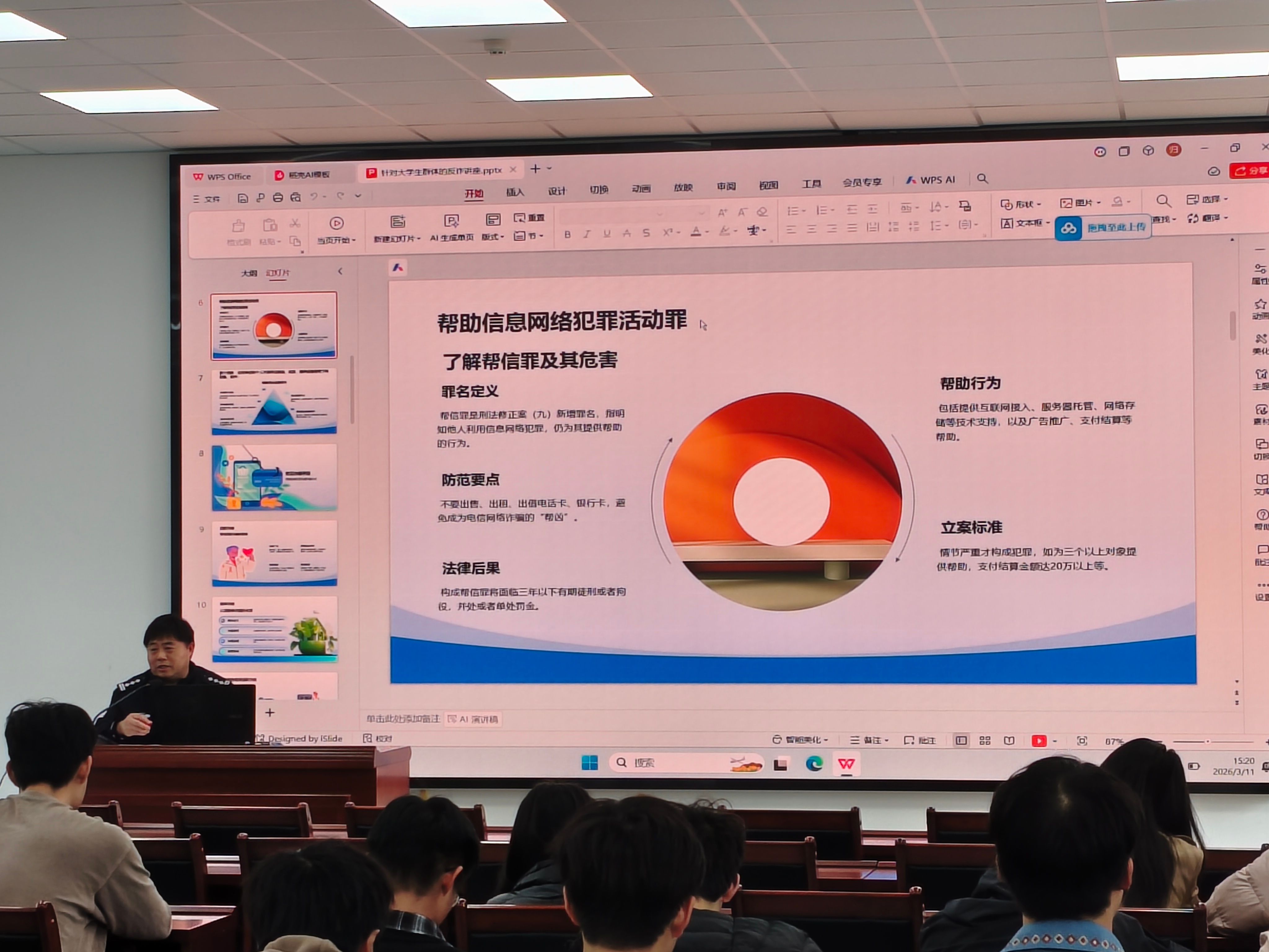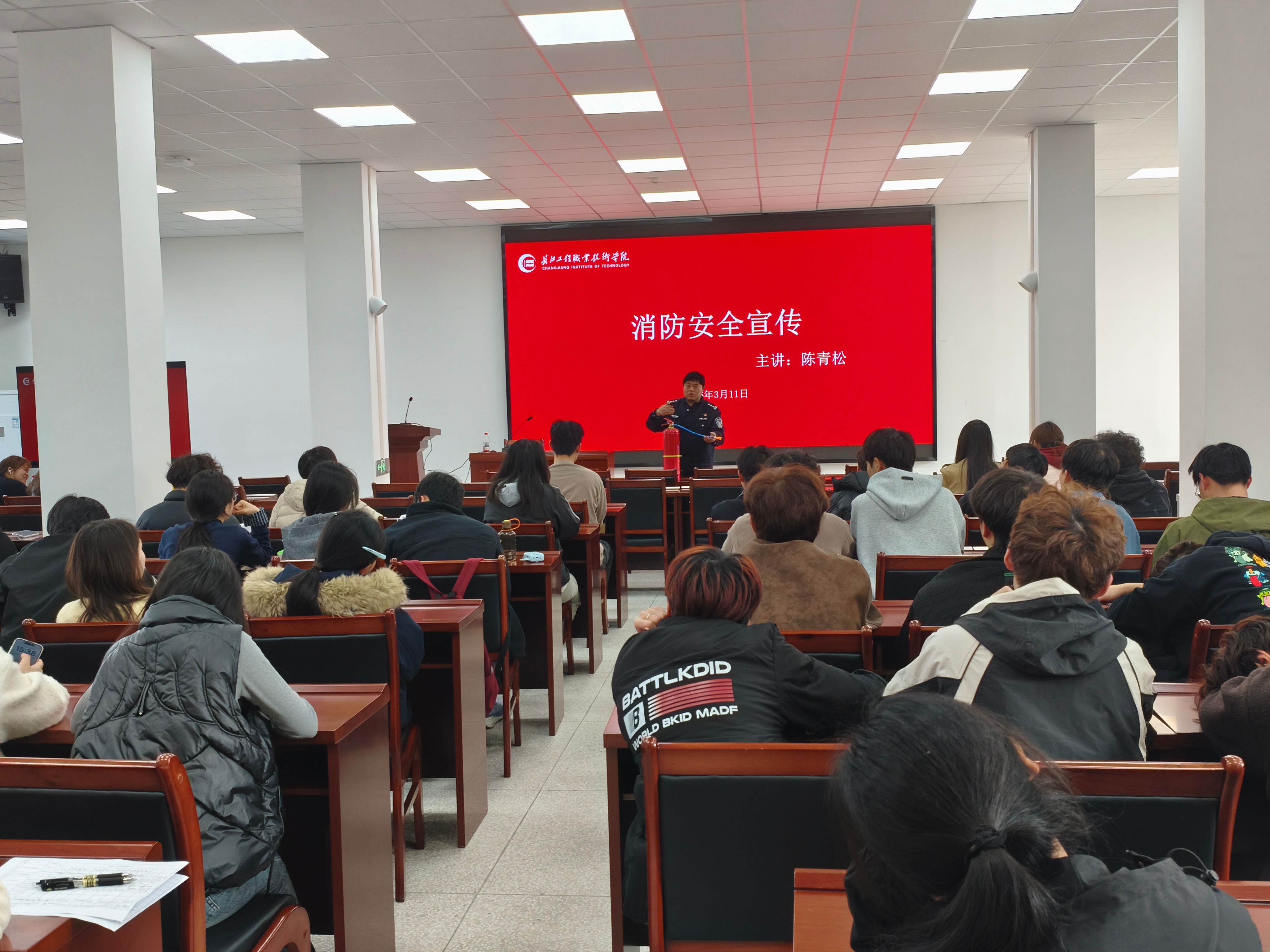 本次宣讲由拥有21年消防工作经验、9年一线公安工作经验的陈青松警官担任主讲。宣讲过程中,陈警官结合校园真实案例,用通俗易懂的语言,围绕电信网络诈骗常见类型、防范要点、受骗后应急处置等内容进行细致讲解,重点提醒师生警惕刷单返利、冒充客服、校园贷等高发诈骗手段,切实提高反诈辨别能力。同时,陈警官依托丰富的消防工作经验,向师生普及校园火灾隐患排查、消防器材正确使用、应急疏散逃生技巧等知识,进一步强化大家的消防安全意识与自救互救能力。