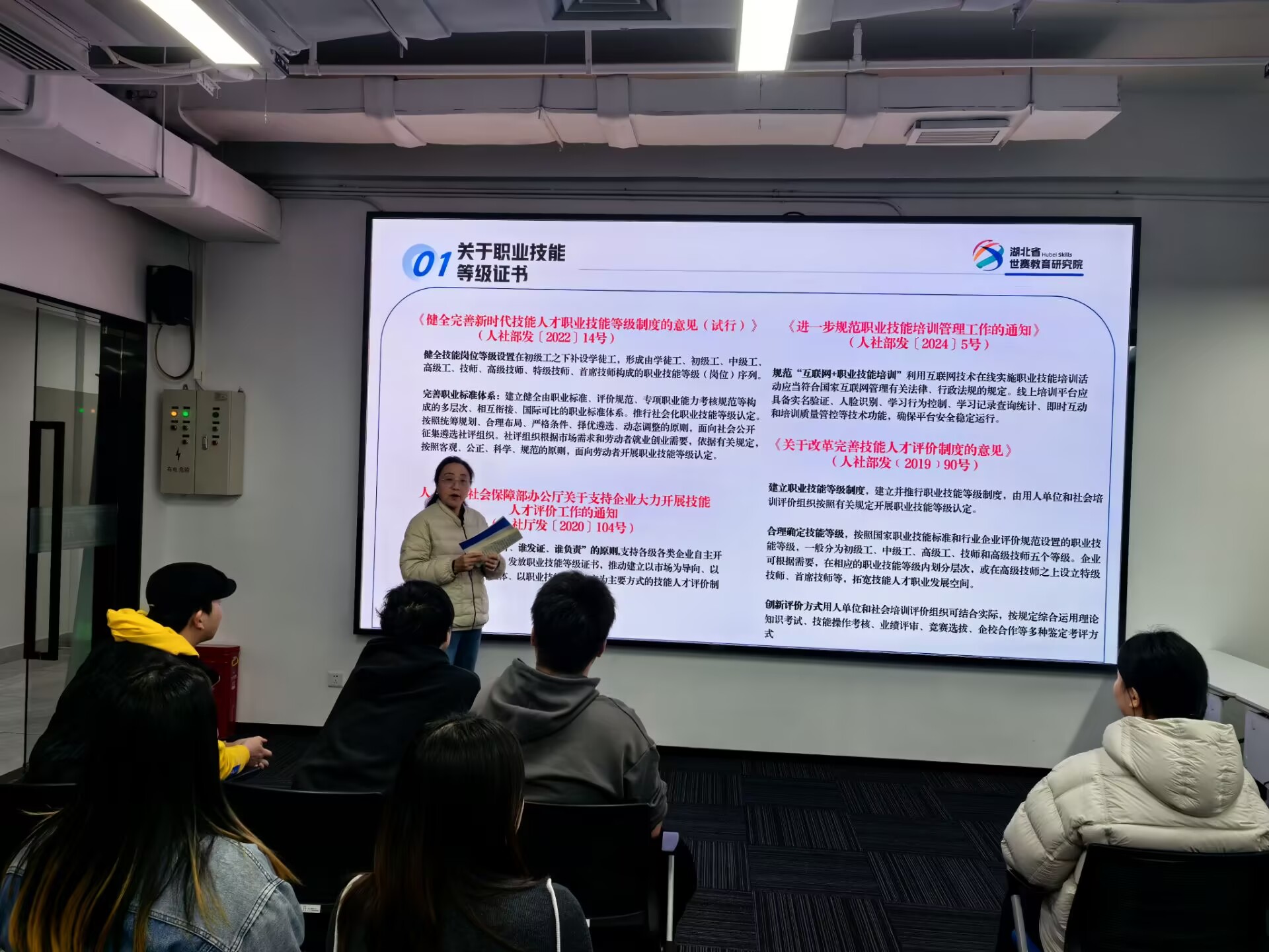 为响应国家“技能中国行动”,以 “对接产业、对标标准、赋能成才” 为核心,为湖北产业高质量发展筑牢技能人才根基,近期,我校数字商贸学院积极拓展湖北技能人才培训领域,为京东武汉第一分公司员工开展电子商务师、互联网营销师、人工智能训练师等职业(工种)培训和考证工作。