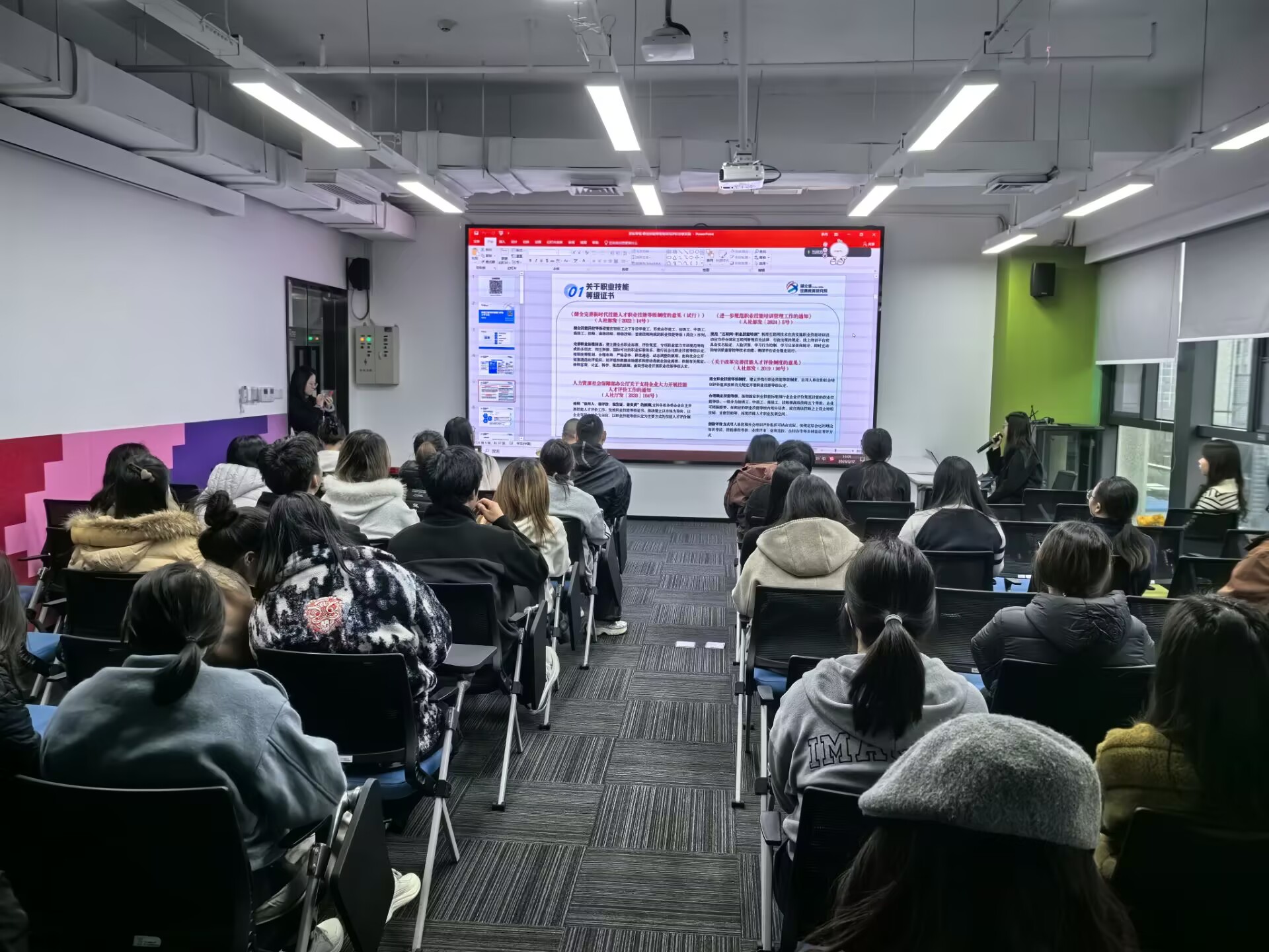 3月17日,数字商贸学院组织教师前往京东武汉第一分公司开展职业技能等级培训和考证宣讲。宣讲会上,数字商贸学院副教授魏文静为90余名京东员工进行职业技能等级培训和考证的宣讲,讲解了人力资源社会保障部关于技能人才培训评价的文件依据,重点围绕员工关心的培训方式、技能考核内容等进行讲解。随后,魏文静与京东员工进行了更深入的一对一面谈沟通咨询,让企业员工有机会更好地把个人岗位技能提升需求与未来职业发展相结合,选择报考合适的职业(工种)。