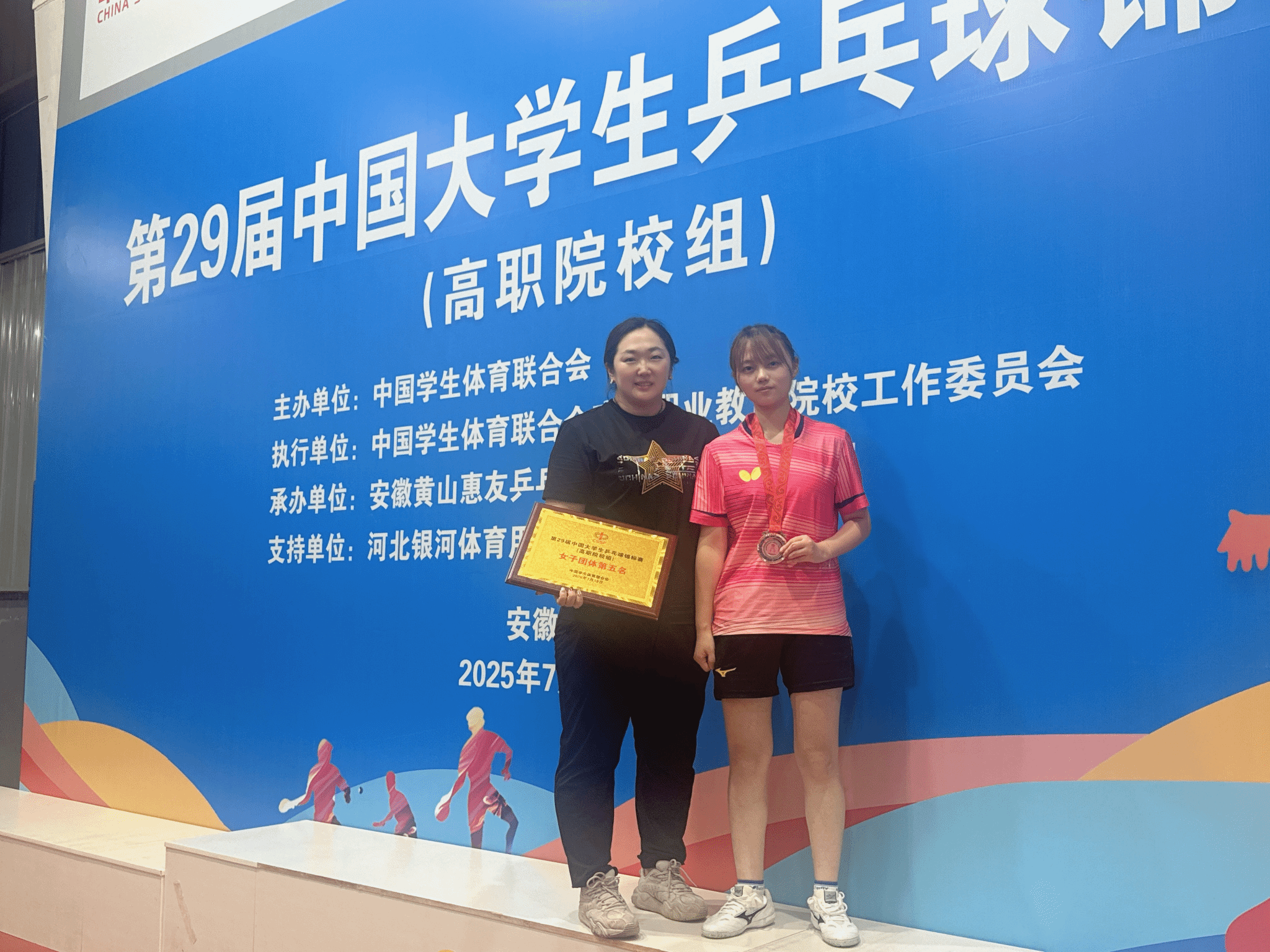 团体赛经过多轮激烈角逐,由我校计算机学院易欣、高语萱、水利水电学院周晶晶同学组成的女子代表队,在全国近20所高职院校的强劲对手中脱颖而出,最终斩获女子团体第五名的佳绩。其中,计算机学院易欣同学在女子单打项目中表现尤为出色,勇夺第三名的好成绩。这一成绩不仅彰显了我校体育教育的显著成效,更充分展现了学子们卓越的运动风采与竞技水平,为学校赢得了崇高荣誉,谱写了体育育人工作的新篇章。