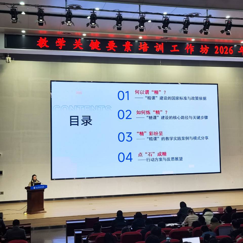 新春伊始,为深入践行教育家精神,强化教师教学核心能力,推进精品课程与优质教材建设,3月4日下午,由党委教师工作部主办的2026年教学关键要素培训工作坊第一讲在西江楼问渠厅成功举办。学校党委副书记陈欣出席活动,全校专任教师参加本次培训。