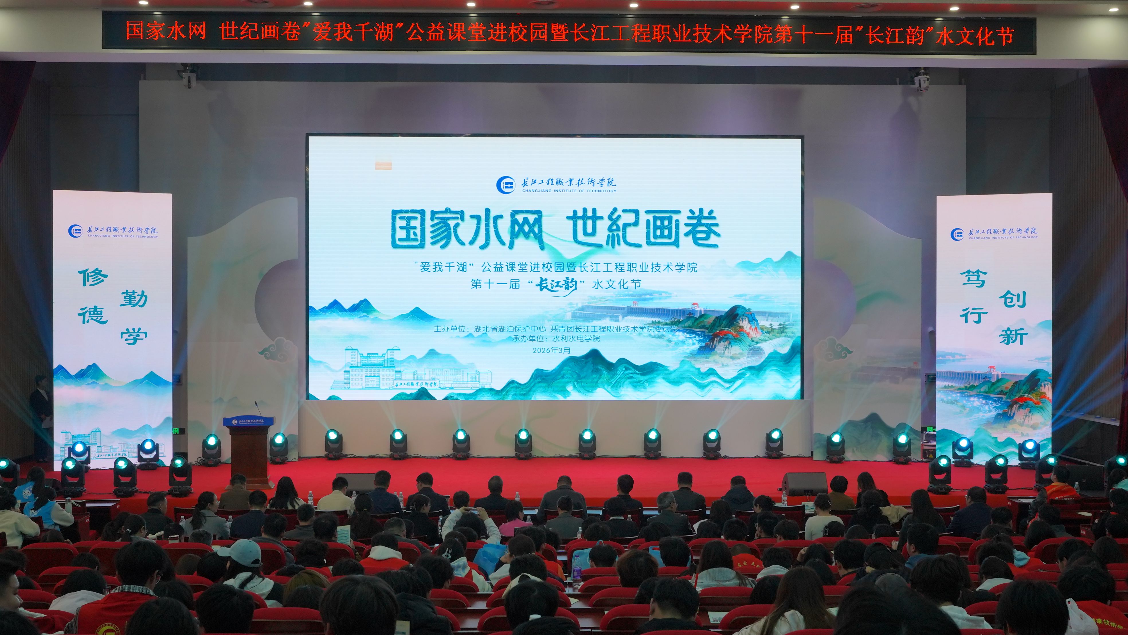 在第三十四届“世界水日”与第三十九个“中国水周”之际,一场聚焦水文化传承与长江生态保护的青春盛会,在汤逊湖畔拉开帷幕。3月25日下午,由湖北省湖泊保护中心、共青团长江工程职业技术学院委员会主办,水利水电学院承办的“爱我千湖”公益课堂进校园暨长江工程职业技术学院第十一届“长江韵”水文化节在西江楼问渠厅正式启动。