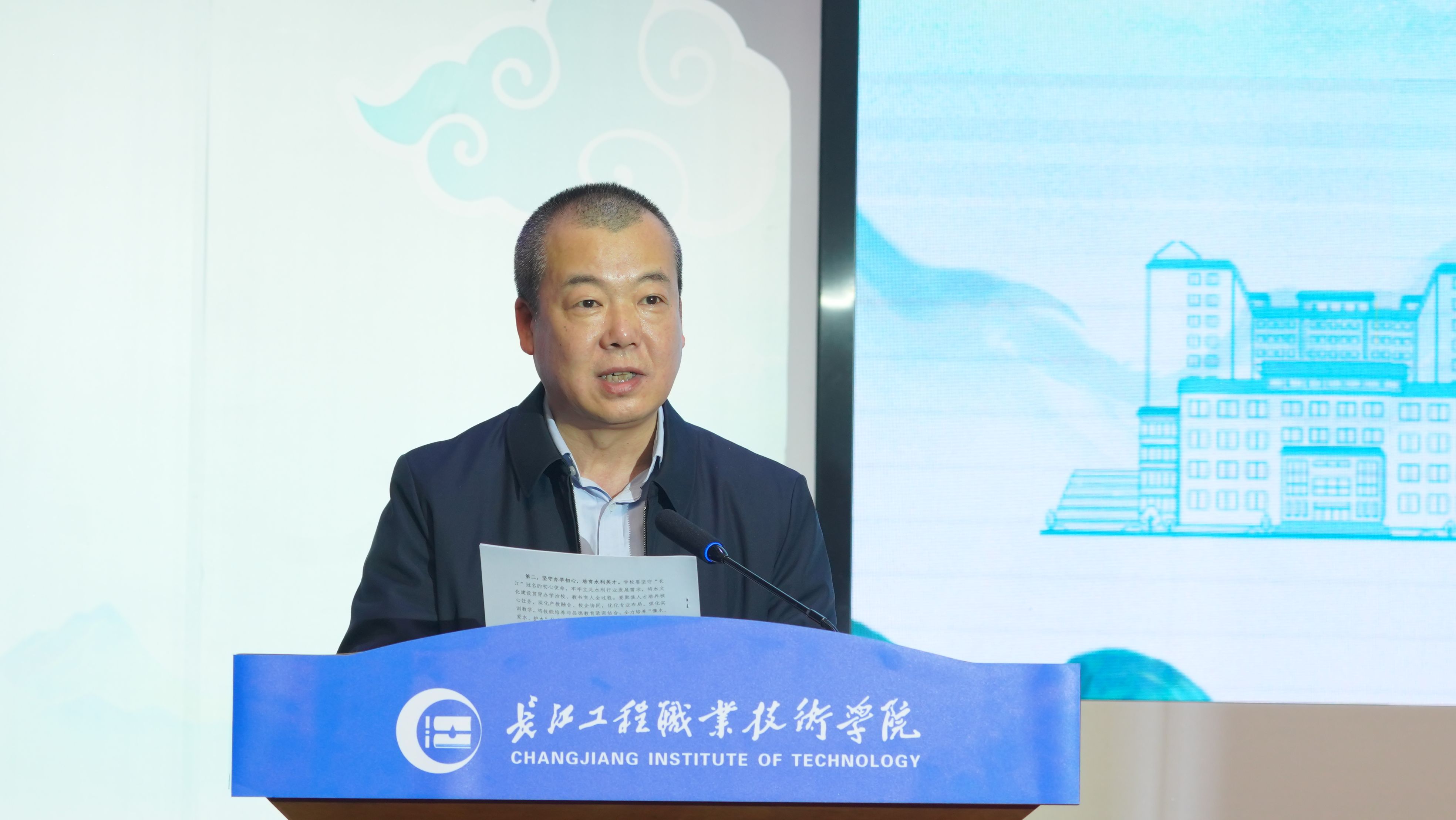 学校党委书记马大奎在致辞中回顾了学校因水而生、依水而兴的办学历程。他指出,从建校初期确立的办学方向,到“长江韵”水文化节连续举办十一届,学校始终依托水利行业特色,促进文化育人与专业建设深度融合,逐步形成了具有影响力的水利职业教育特色品牌。他向长期关心支持学校发展的社会各界,以及坚持投身江河保护一线的师生和长江大保护志愿服务联盟成员表示感谢,并提出三点希望:凝聚社会合力,共护一江碧水;坚守办学初心,培育水利英才;勇担时代使命,争做护水先锋。