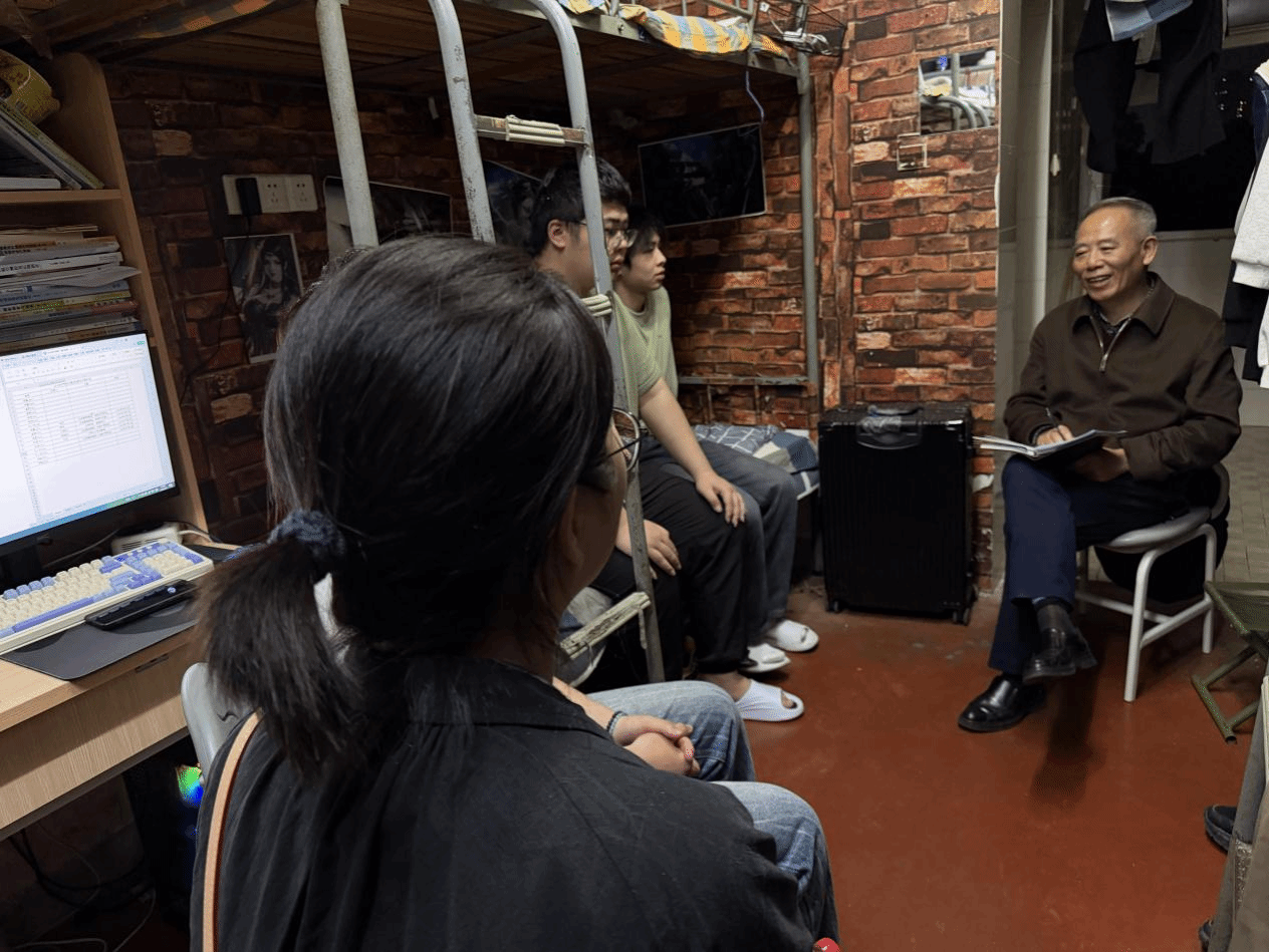 走访过程中,刘文胜与同学们促膝长谈、深度互动,放下身份、贴近学生,从宿舍相处、食堂餐饮、财产安全等生活细节,到实训实习、师资评价、职业规划、心理健康等成长关切,逐一细致问询、认真记录,耐心回应同学们的各类疑问,用务实的态度拉近了与学生的距离,传递了学校的温暖。
