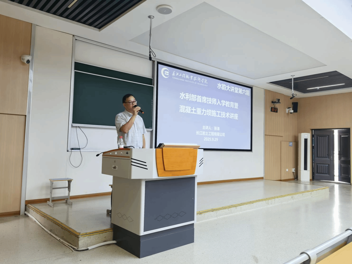 9月29日上午,全国水利技术能手、全国技术能手、全国水利行业首席技师张涛应邀到我校做水韵大讲堂(第六期)学术讲座,他在汉水楼110报告厅为水利水电学院带来了一场主题为“25级新生入学教育暨混凝土重力坝施工技术”的精彩讲座,讲座由陈萌博士主持。