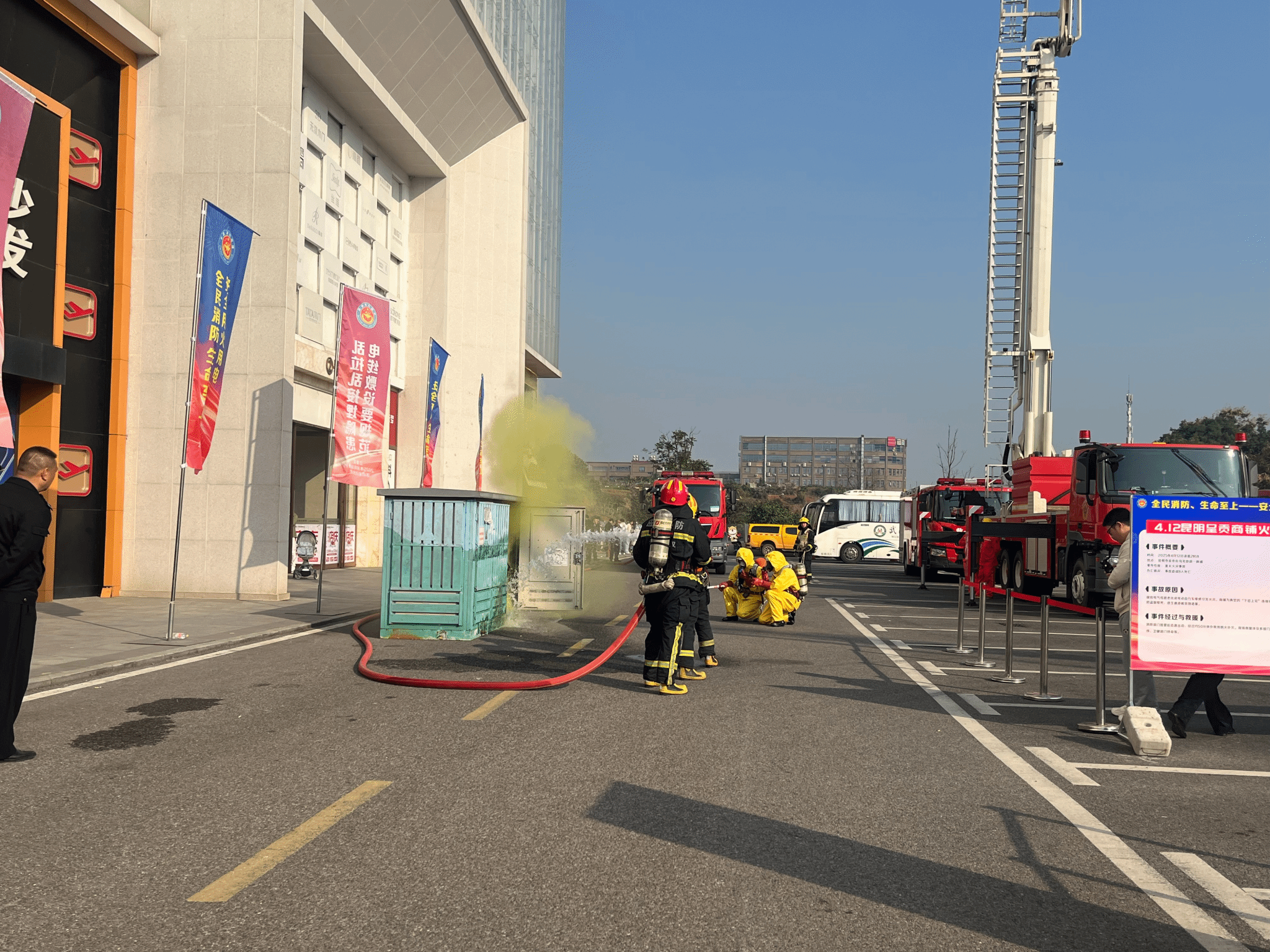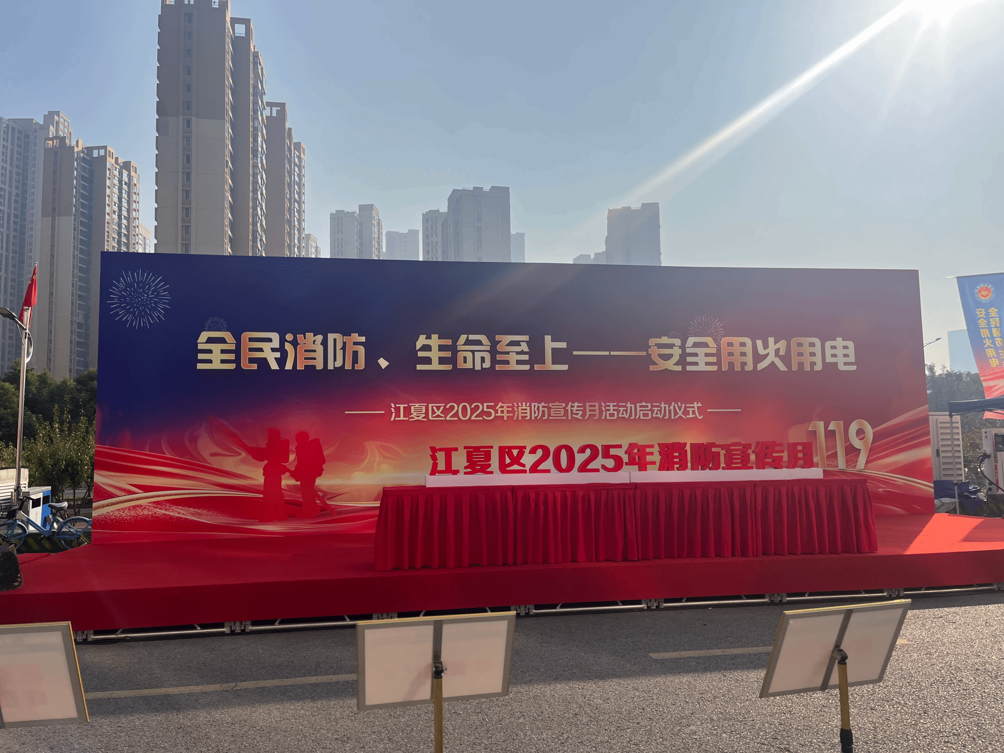 活动现场围绕“全民消防、生命至上——安全用火用电”主题,针对施工动火作业、居民生活用火、电气消防安全、电动自行车充电停放等安全问题,以鲜活的火灾案例为教材,教育广大群众以案为鉴、警钟长鸣,自觉落实消防安全防范措施。