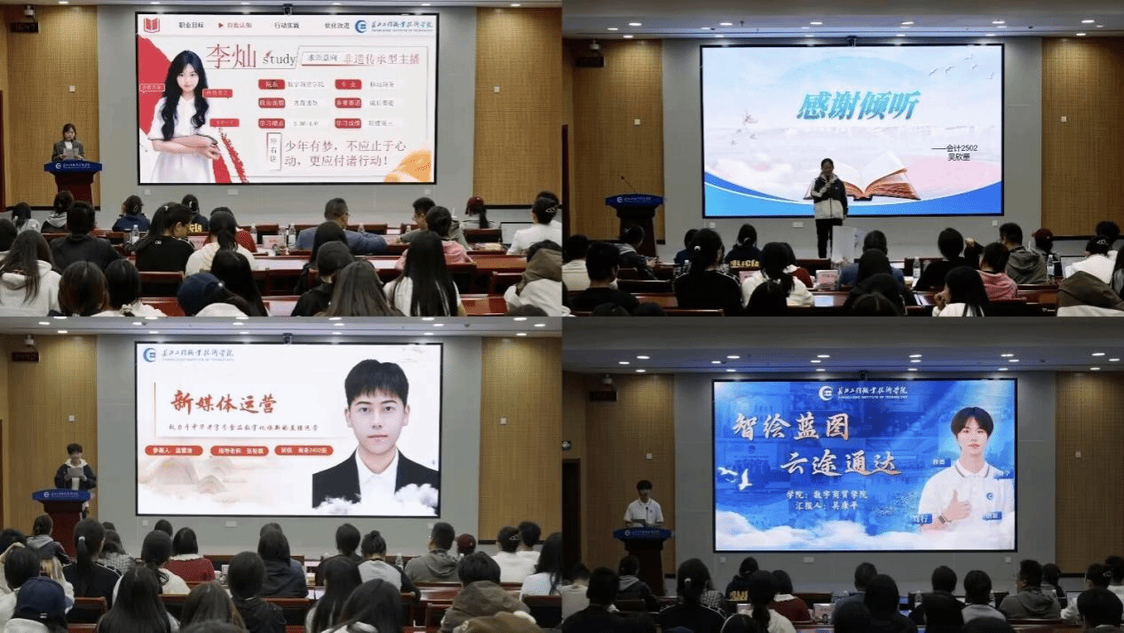 大赛经过前期材料初筛、复赛选拔等环节,最终12名选手晋级决赛。决赛分为就业赛道与成长赛道,就业赛道选手围绕具体职业目标,结合行业趋势分析、求职路径规划等,展现清晰的就业导向与充分的职业准备;成长赛道选手则以长期职业发展为核心,从自我认知、职业分析等维度,阐述个人成长路径与发展蓝图。评委依据求职简历、职业生涯发展报告及现场表现等进行综合评定,在肯定选手规划亮点的同时,也提出了具有针对性的优化建议,为选手们完善职业规划提供了有力指导。