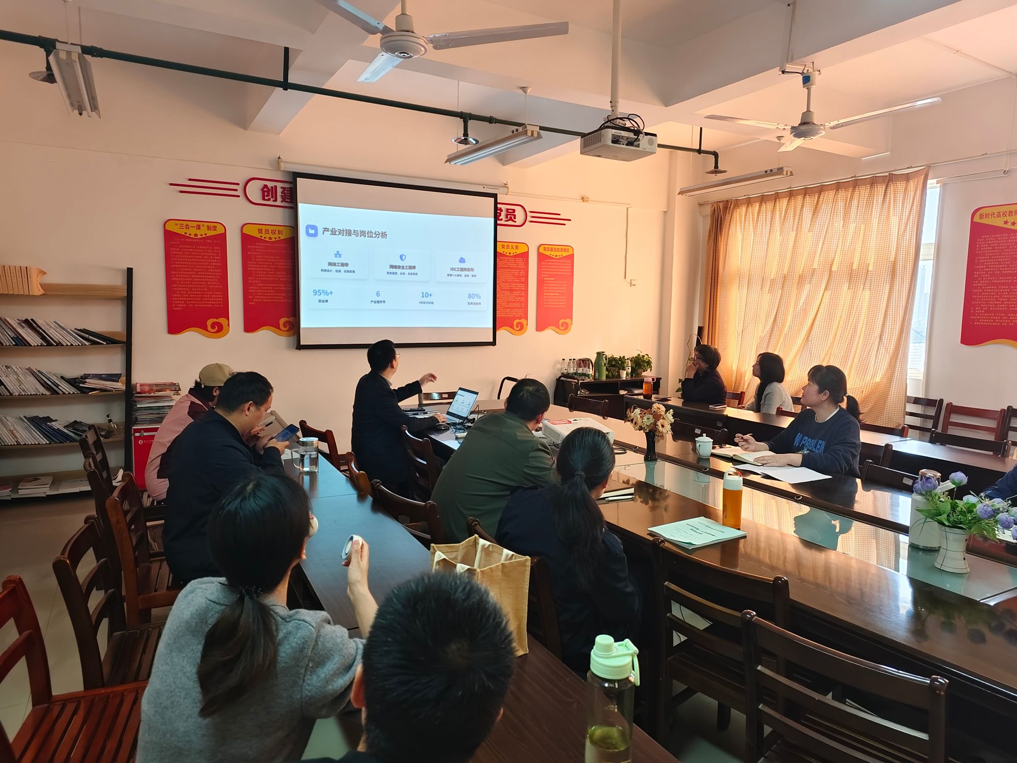 13名参加“五金”建设能力专项培训的教师,结合暑期培训内容和自己的工作任务,进行了经验分享。陈荣老师介绍了计算机网络技术专业的人才培养模式的改革思路,朱金波老师对如何优化现场工程师专项培养计划的“五金”建设提供了自己的想法和建议。