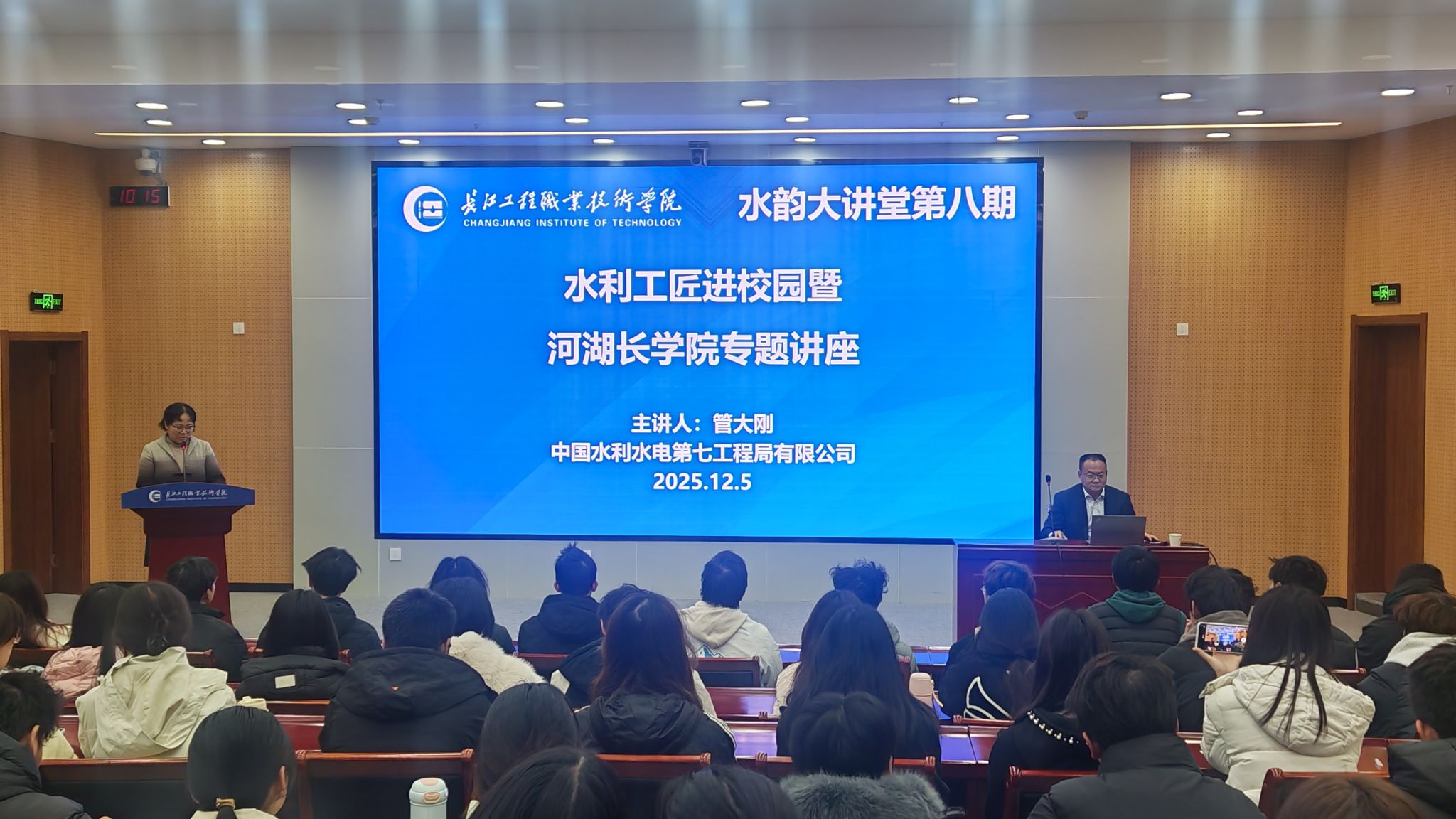 12月5日,水利水电学院在惟勤厅成功举办水利工匠进校园暨河湖长学院专题讲座。邀请了中国水利水电第七工程局有限公司南方公司副总经理管大刚主讲,学院院长邹林主持,110余名师生现场聆听了这场兼具理论深度与实践温度的行业盛宴。
