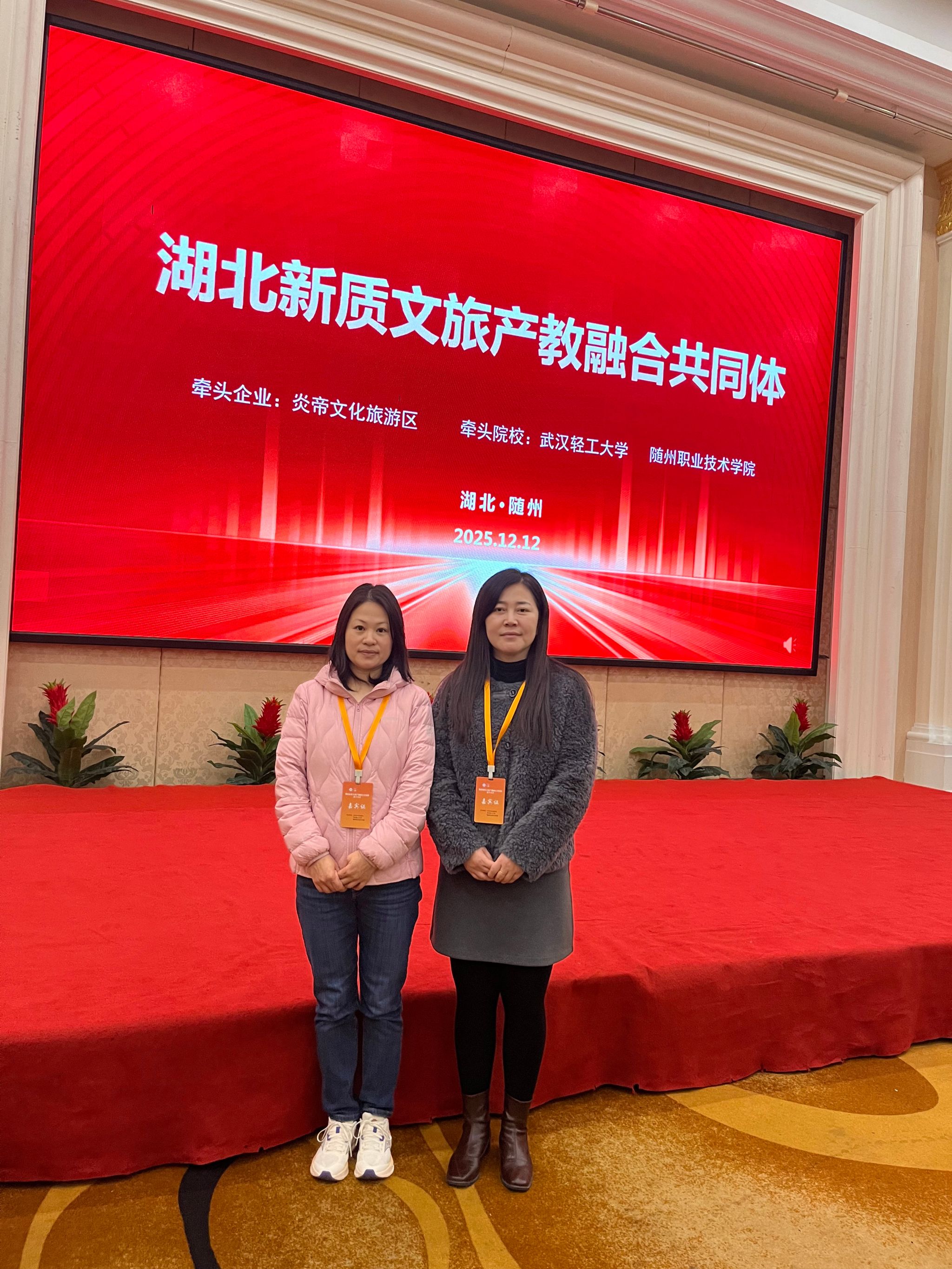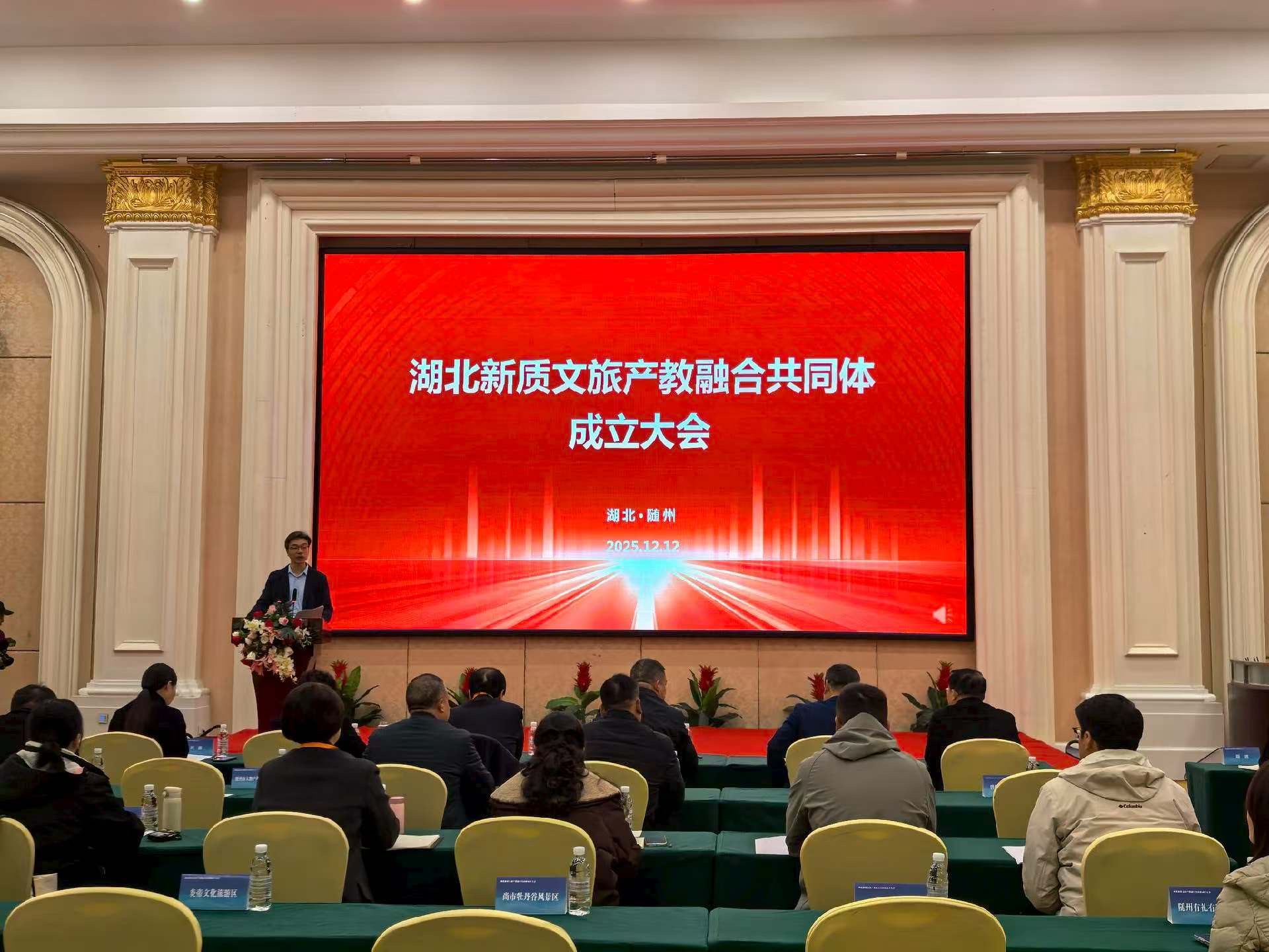 12月1 日,由炎帝文化旅游区、武汉轻工大学、随州职业技术学院联合发起的湖北新质文旅产教融合共同体成立大会在随州召开。我校当选为副理事长单位,数字商贸学院党总支书记贾书媛、旅游专业带头人杨义菊一行参加大会并接受授牌。