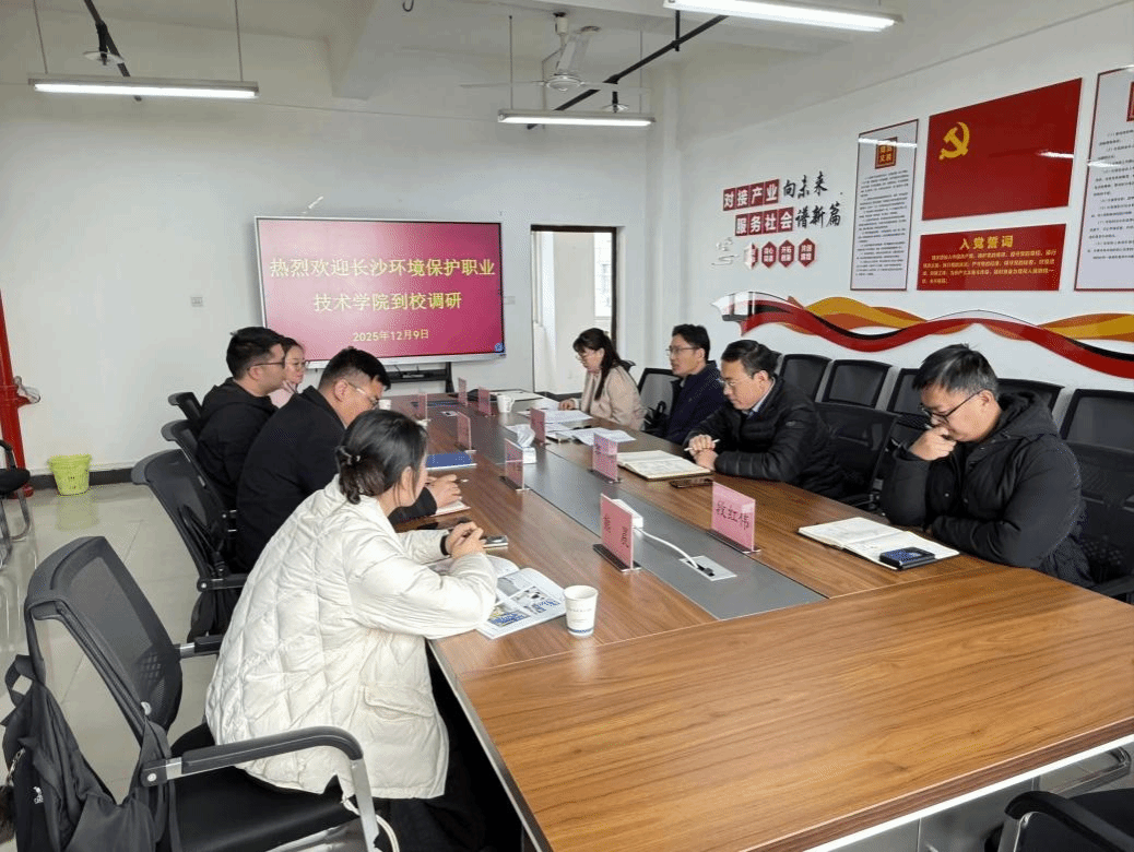 12月9日下午,长沙环境保护职业技术学院环境资源学院副院长张文博一行4人来校,围绕测绘地理信息专业群建设工作开展专题调研与交流。此次调研是对2024年5月我校前往该校调研交流的回访,标志着两校合作步入持续深化阶段。北斗技术学院党总支书记刘飞、教学副院长郭涛、教研室主任徐健梅、段红伟等热情接待并参与座谈。