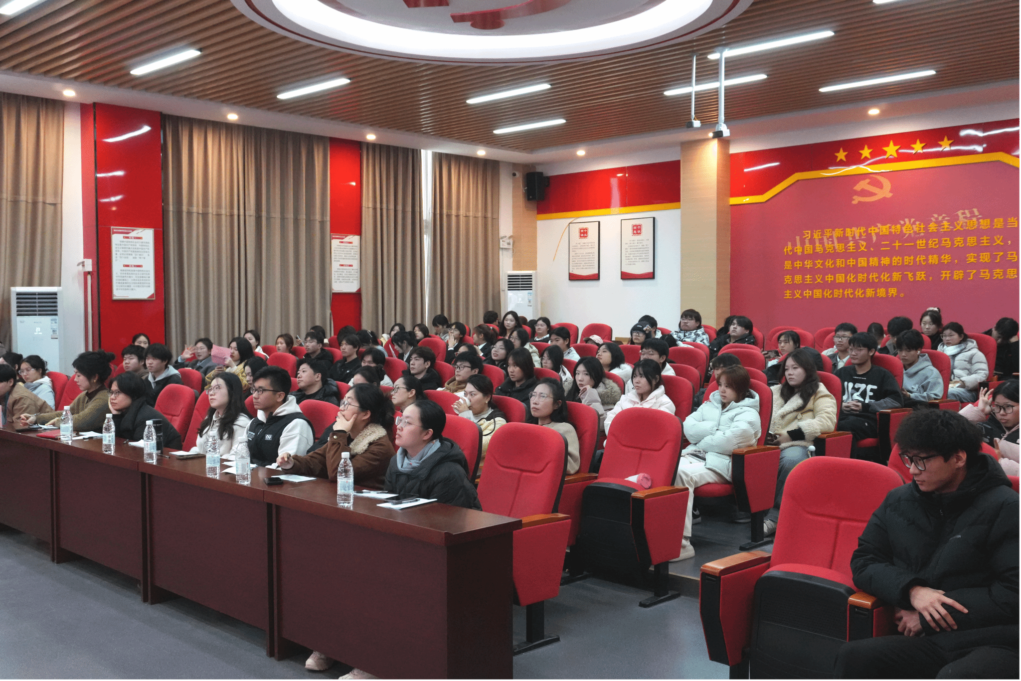 12月24日下午,我校2025级心理健康优秀主题班会评比决赛在汉水楼510室成功举办。党委宣传部部长曹冬红、党委学生工作部部长杨艳、各二级学院党总支副书记参加活动,心理健康教育中心主任张欣及各二级学院心理健康专职辅导员担任评委,2025级全体心理委员现场观摩学习。