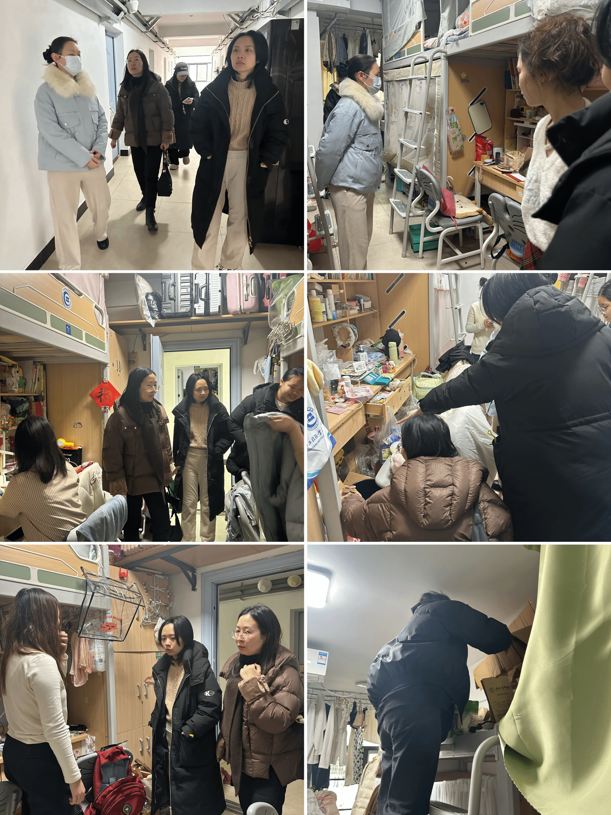 学院依据部署迅速行动,由院长、党总支副书记带队,全体专兼职辅导员共同对学生宿舍开展了全覆盖、拉网式安全大检查。老师们深入每间宿舍,对用电规范、消防设施、卫生状况及防盗措施进行了严格排查,特别对桌底、门后、空床铺等隐蔽角落进行了重点清查。检查过程中,老师们与同学们亲切交谈,反复叮嘱大家务必提升安全意识,离校前切实做到“人走断电、关窗锁门”,妥善保管个人物品,严格遵守宿舍管理规定。