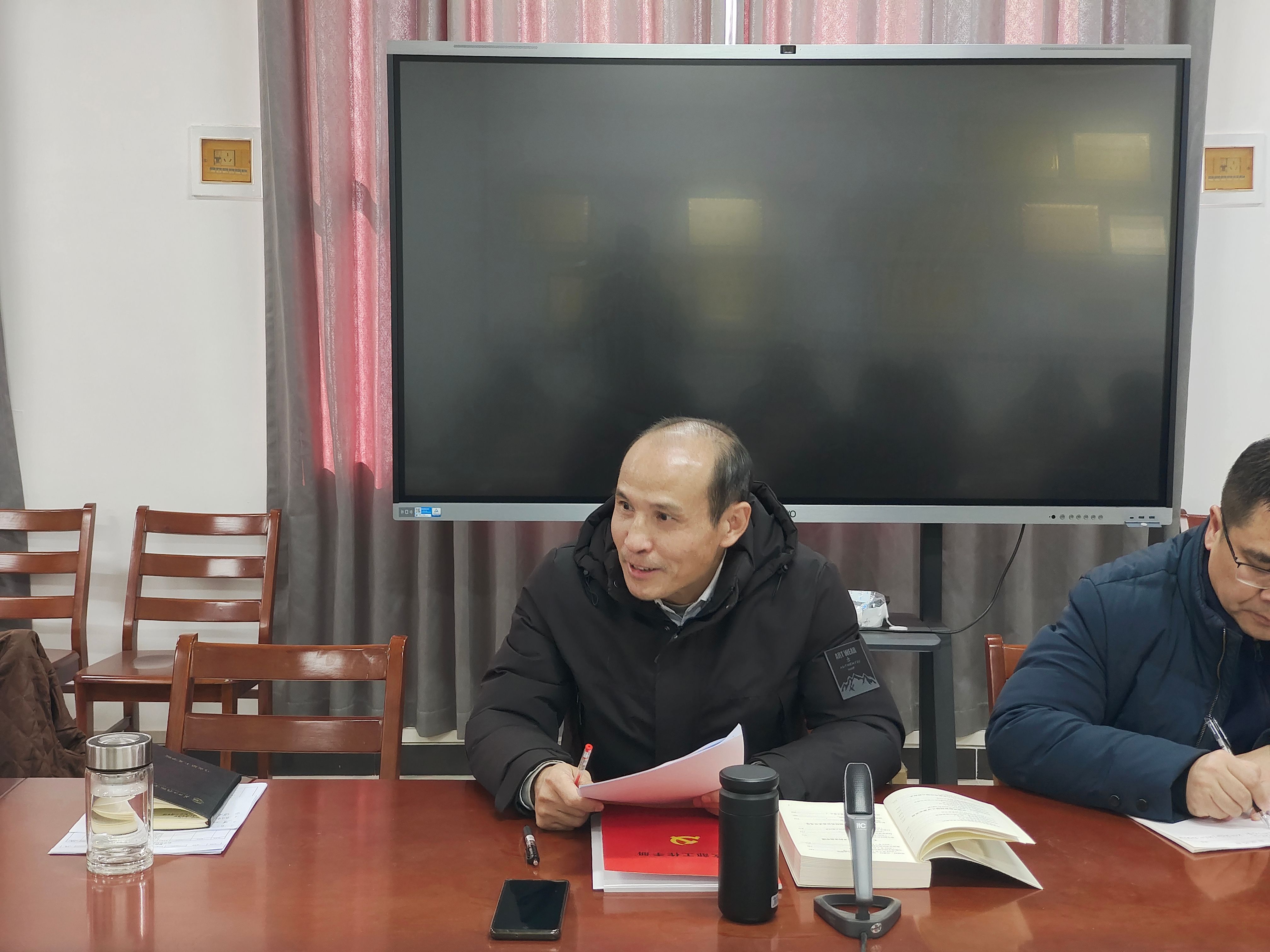 为深入学习贯彻党的二十届四中全会精神,精准把握《中共中央关于制定国民经济和社会发展第十五个五年规划的建议》中“推进社会主义民主法治建设”重要任务的核心要义,切实筑牢党员的思想理论根基,1月14日下午,马克思主义学院党总支在汉水楼511会议室召开专题党课学习会议,全体党员参加了学习活动,党课由党总支书记易承宗主讲。