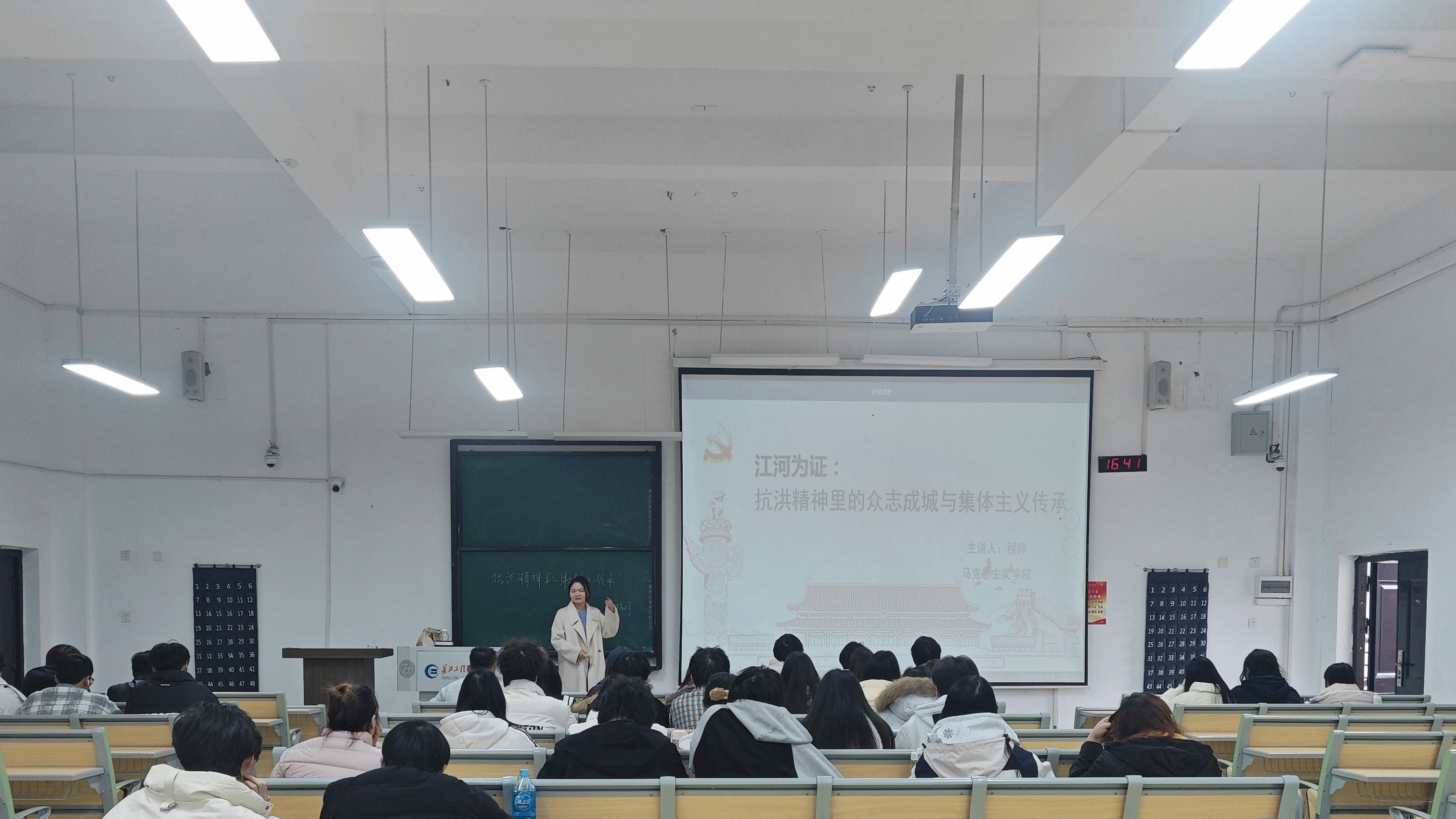 张轲、程婷老师在《江河为证:抗洪精神里的众志成城与集体主义传承》讲座中,以江河为主线,通过历史影像与感人故事,生动再现了抗洪斗争中的艰险历程。他着重剖析了“万众一心、众志成城,不怕困难、顽强拼搏”的抗洪精神,引导学生深刻思考个体与集体的关系,理解集体主义力量是战胜一切艰难险阻的重要法宝,并鼓励学生将这种团结协作、勇于担当的精神融入日常学习与生活。