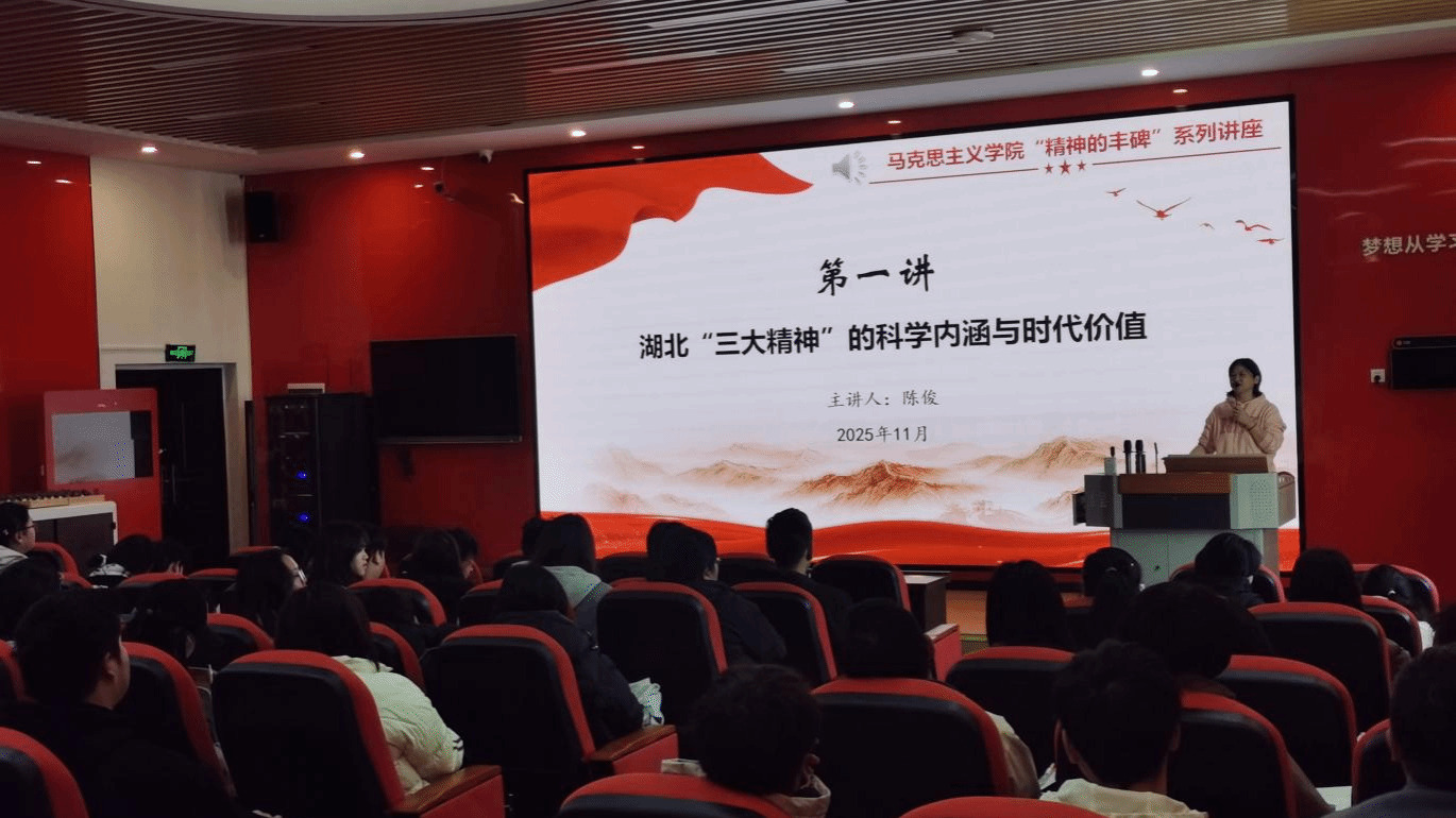 为深入学习贯彻习近平总书记考察湖北重要讲话精神,扎实推进红色基因传承与时代新人培育,本学期以来,马克思主义学院持续举办“精神丰碑”系列思政专题讲座。系列讲座第二期近期在文化大道深入开展,每场讲座百余名学生参加。教师围绕湖北“三大精神”——大别山精神、抗洪精神、抗疫精神,为青年学子带来多场内涵丰富、启迪深刻的思想盛宴,引导广大学生从红色精神中汲取信仰力量、筑牢担当之魂。