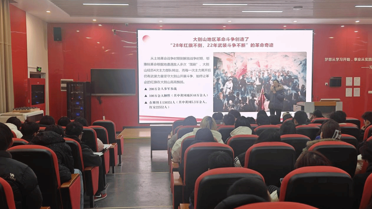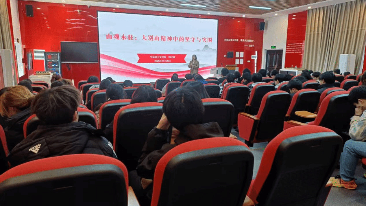 在整体把握的基础上,系列讲座分别对三大精神进行了深入浅出的聚焦解读。张红瑾、韩文政两位老师以《山魂永驻:大别山精神中的坚守与突围》为题,带领学生回顾了大别山革命根据地“28年红旗不倒”的壮阔史诗,深刻解读了“坚守信念、胸怀全局、团结奋进、勇当前锋”的精神内核,并启发学生将革命年代“坚守”的执着与“突围”的胆识,转化为钻研专业、勇于创新的当代实践。