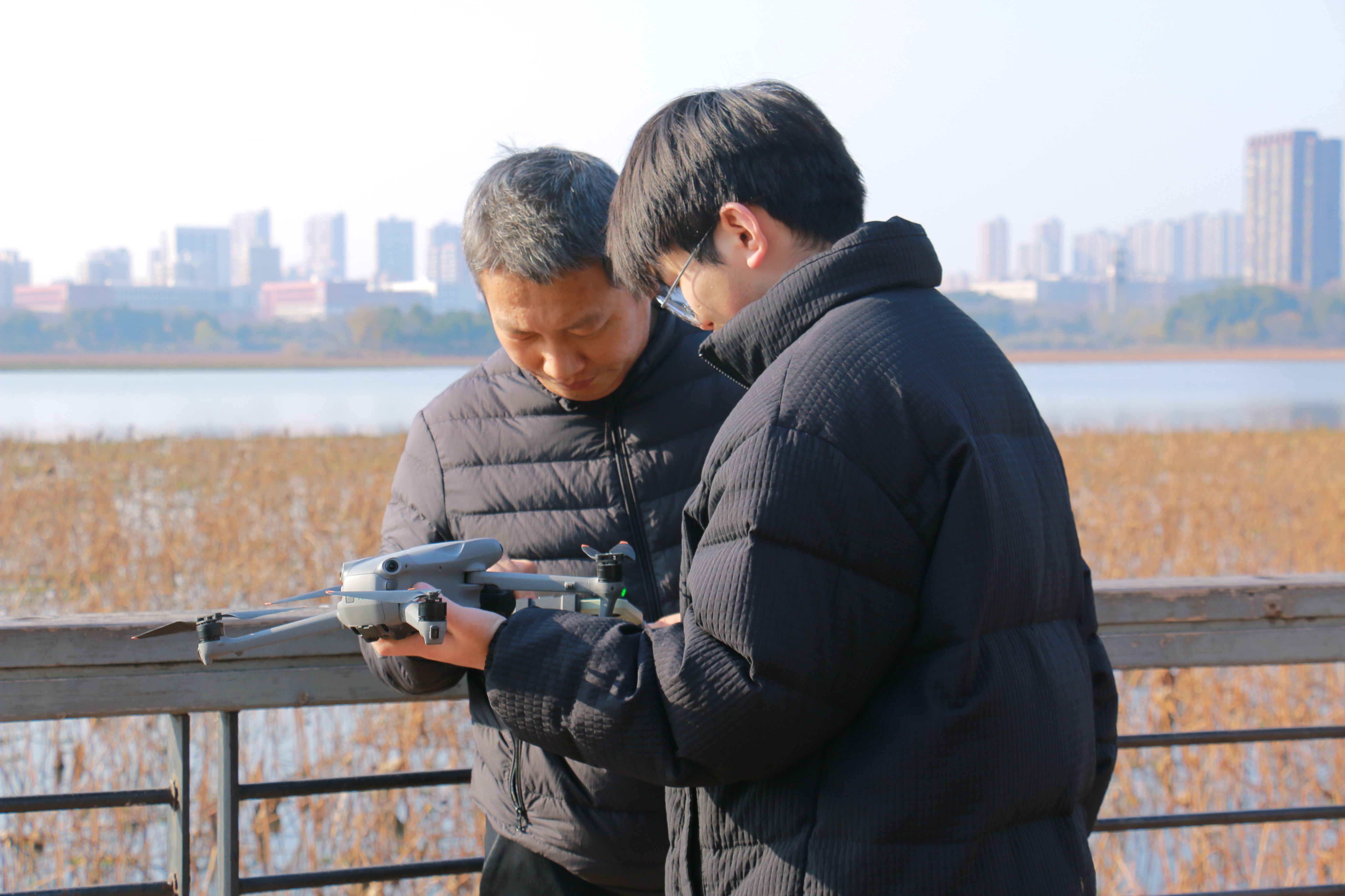 本次主题党日将专业实践与组织生活紧密结合。在活动现场,支部同学们充分发挥专业所长,携带无人机等北斗高精度定位设备,深入武汉市汤逊湖等重点河湖流域,持续开展汤逊湖水域岸线监测工作。团队克服寒风、冰冻等困难,累计航测面积50平方公里,采集监测图片1200余张,为后期有关汤逊湖水域岸线变化监测成果形成奠定了基础,为水利部门开展生态保护、防汛调度提供了精准的数据支撑。