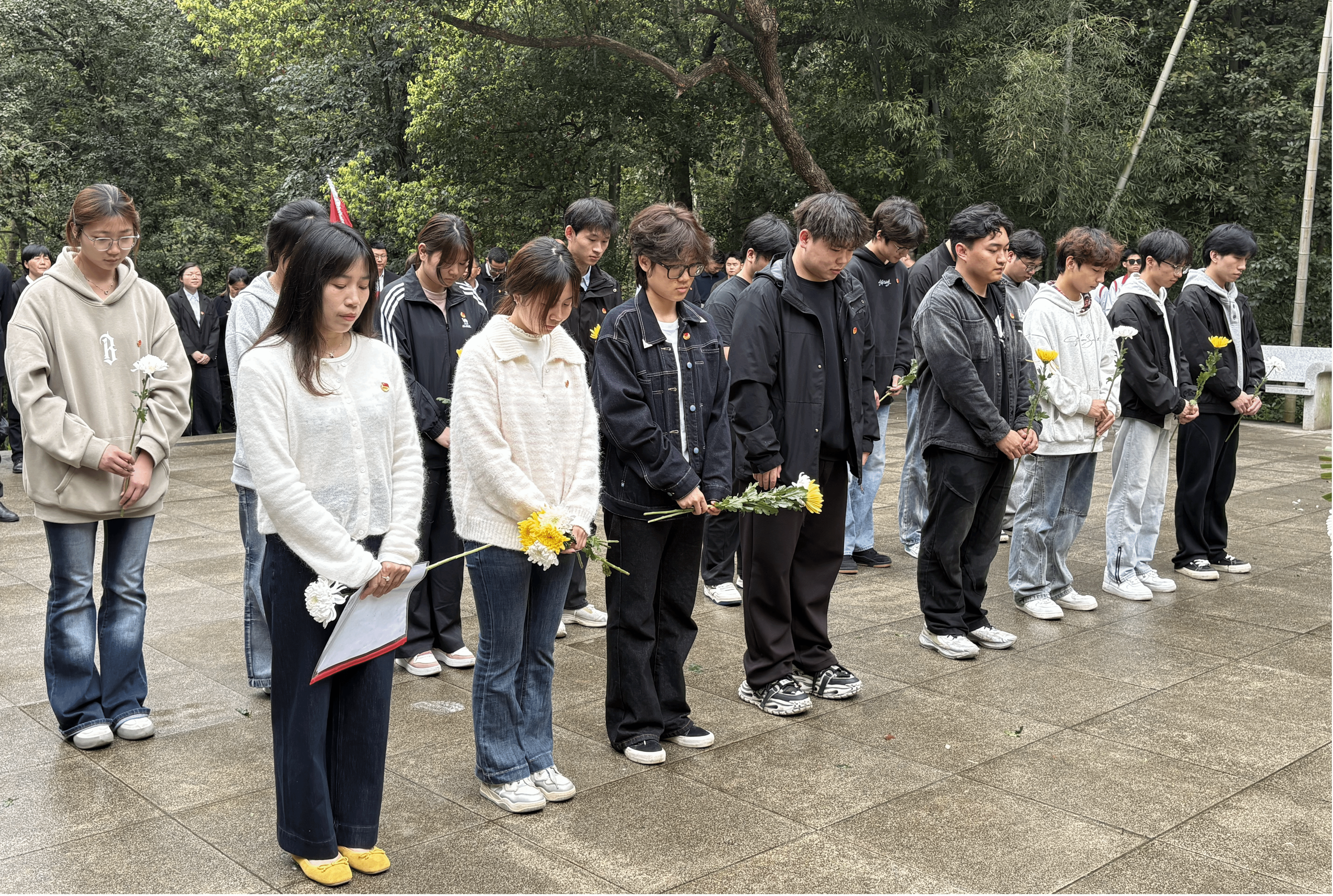 学生代表杜思源在发言中回望了革命先辈浴血奋战的峥嵘岁月,号召同学们铭记历史、不负韶华,坚定理想信念,锤炼专业本领,以青春担当传承红色血脉,勇担时代使命。教师代表陈婧飞在致辞中勉励同学们铭记先烈精神,厚植爱国情怀,将缅怀之情转化为学习动力,努力成长为有理想、敢担当、能吃苦、肯奋斗的新时代青年。