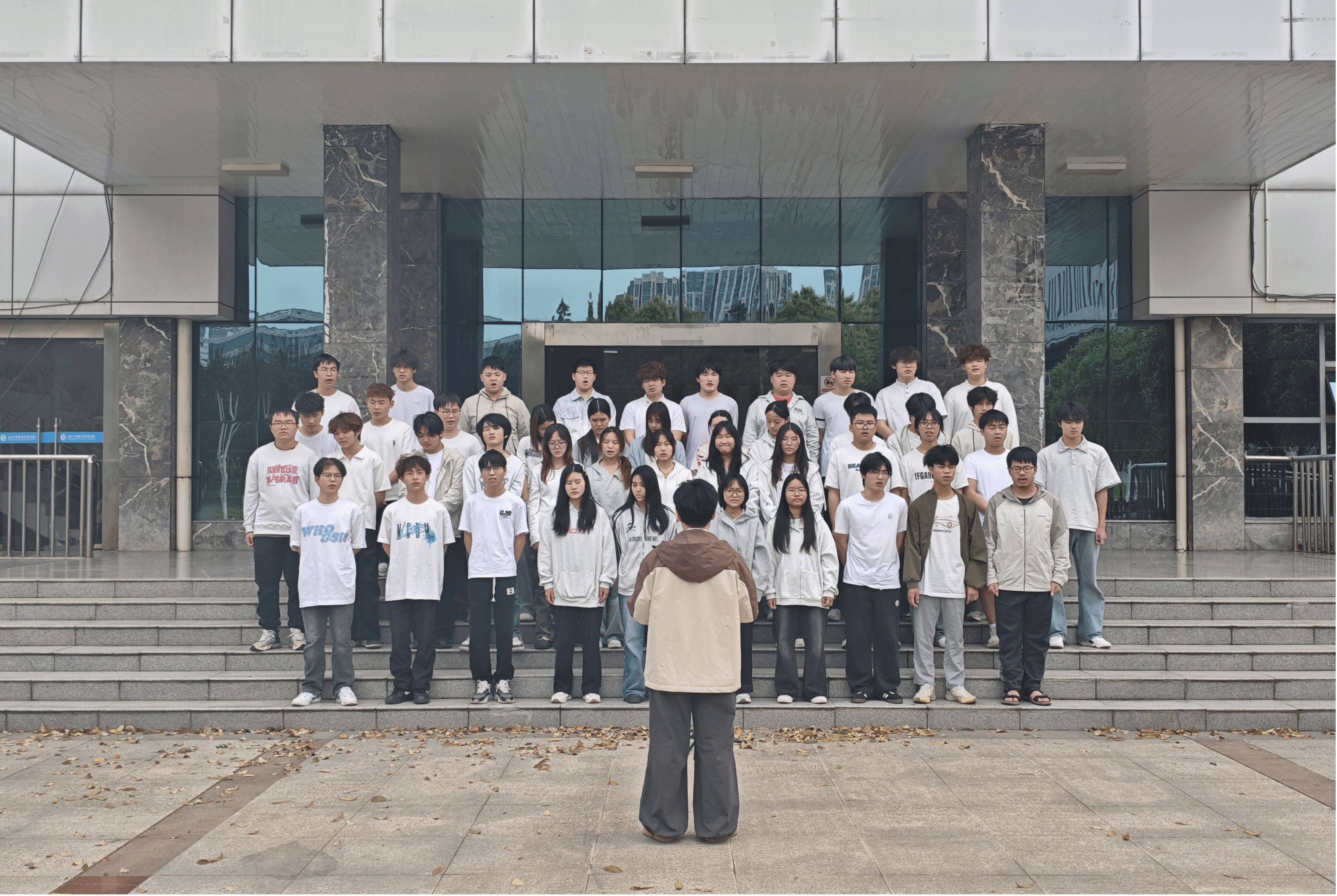 赛前,各班级在候场区井然有序地做着最后准备。同学们互相加油鼓劲,反复磨合声部细节,队伍整齐安静,每个人的脸上都写满了自信与期待。比赛正式开始后,各班依次登场,《我爱你中国》《我和我的祖国》深情悠扬,唱出对祖国的赤诚热爱;《紫荆花盛开》温婉动人,传递家国同心的温暖情怀;《立春》清新灵动、《稻香》治愈温暖,同学们以真挚的情感、整齐的和声,配合精心设计的舞台编排,唱响青春旋律,礼赞伟大祖国。