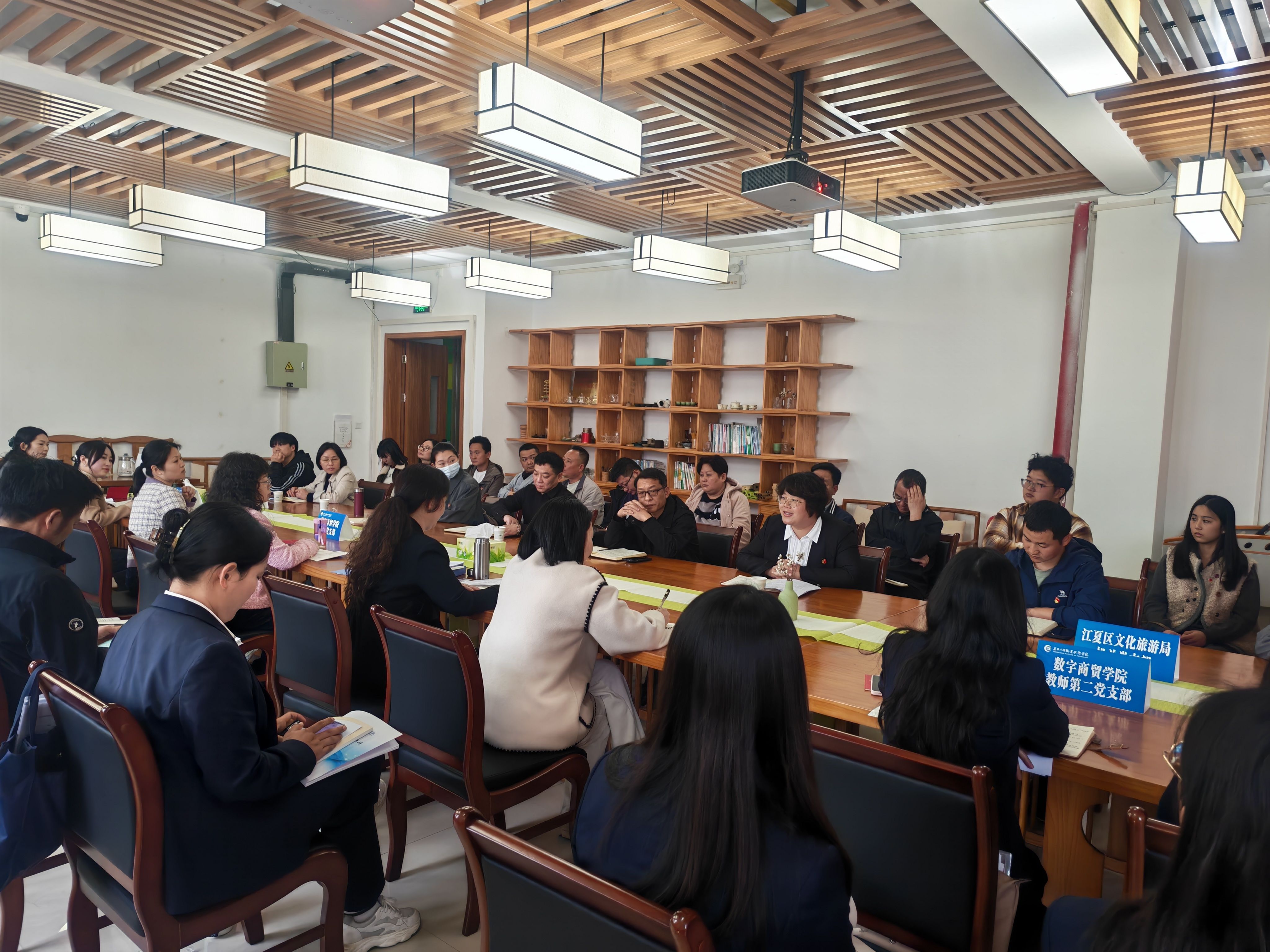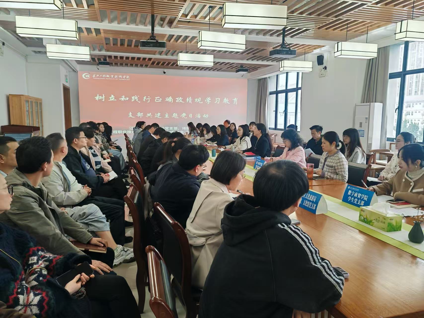 为扎实推进树立和践行正确政绩观学习教育,深化校地党建共建与产教融合,4月22日下午,数字商贸学院与江夏区文旅局联合开展主题党日活动。江夏区文旅局机关党支部、博物馆、文化本馆党支部全体党员,数字商贸学院教师第二党支部、学生党支部全体党员参加活动,数字商贸学院党总支书记贾书媛主持活动。