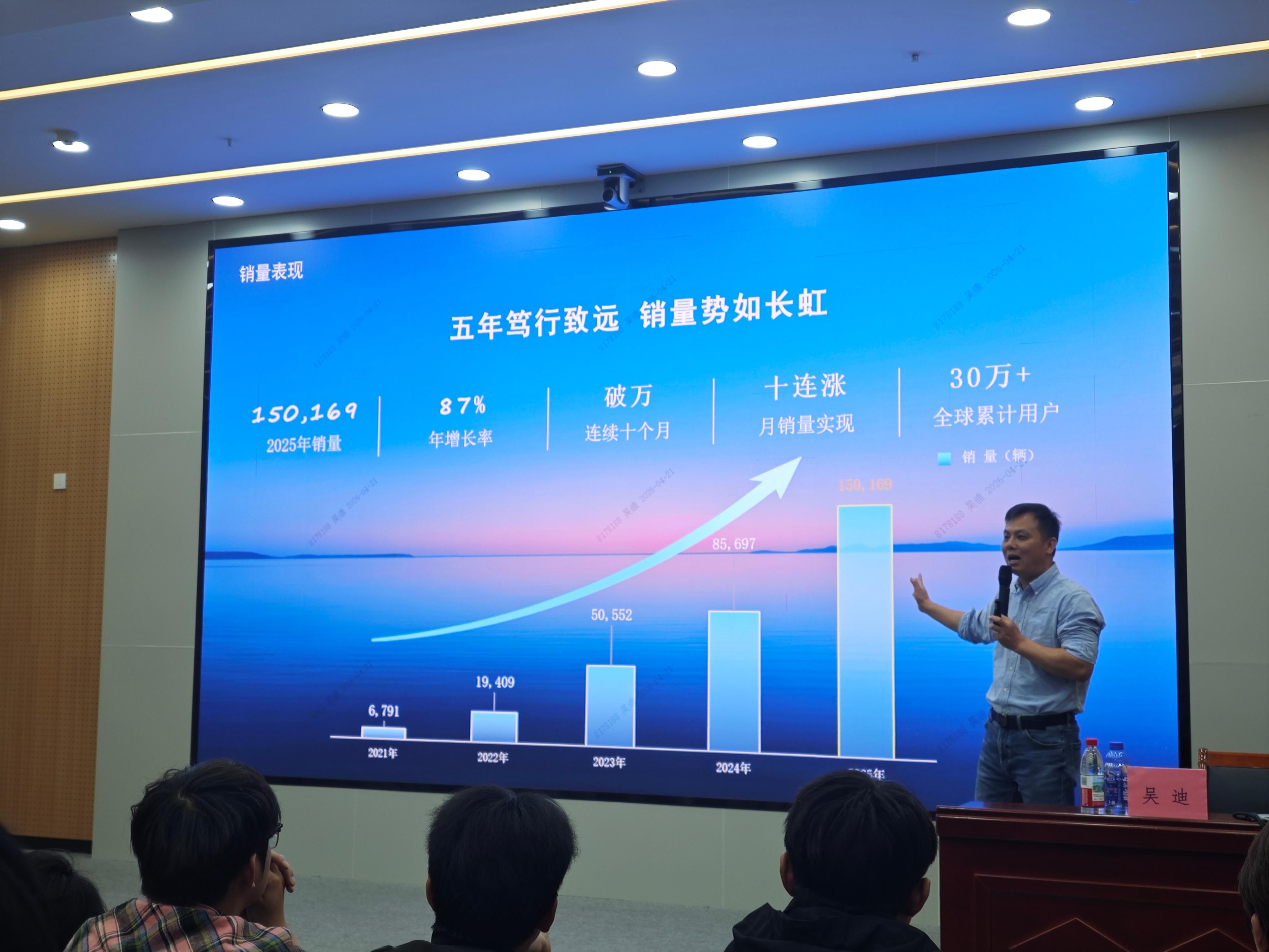 汽车研究室主任廖文蓉表示,岚图汽车作为湖北本土高端新能源汽车标杆品牌,与我校在湖北产业教授项目上深度合作,是产教融合、校企协同育人的重要成果。此次专题讲座既是行业前沿分享,也是人才对接盛会,旨在帮助同学们进一步明确职业方向、提升专业素养。